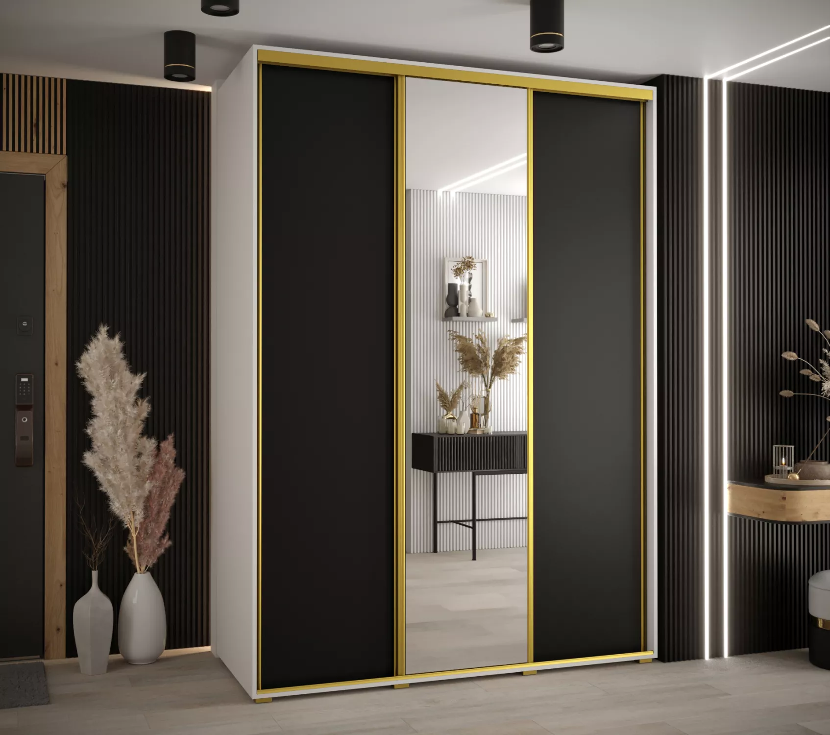Šatní skříň ASIRI 3 - 180/60 cm, bílá / černá / zlatá