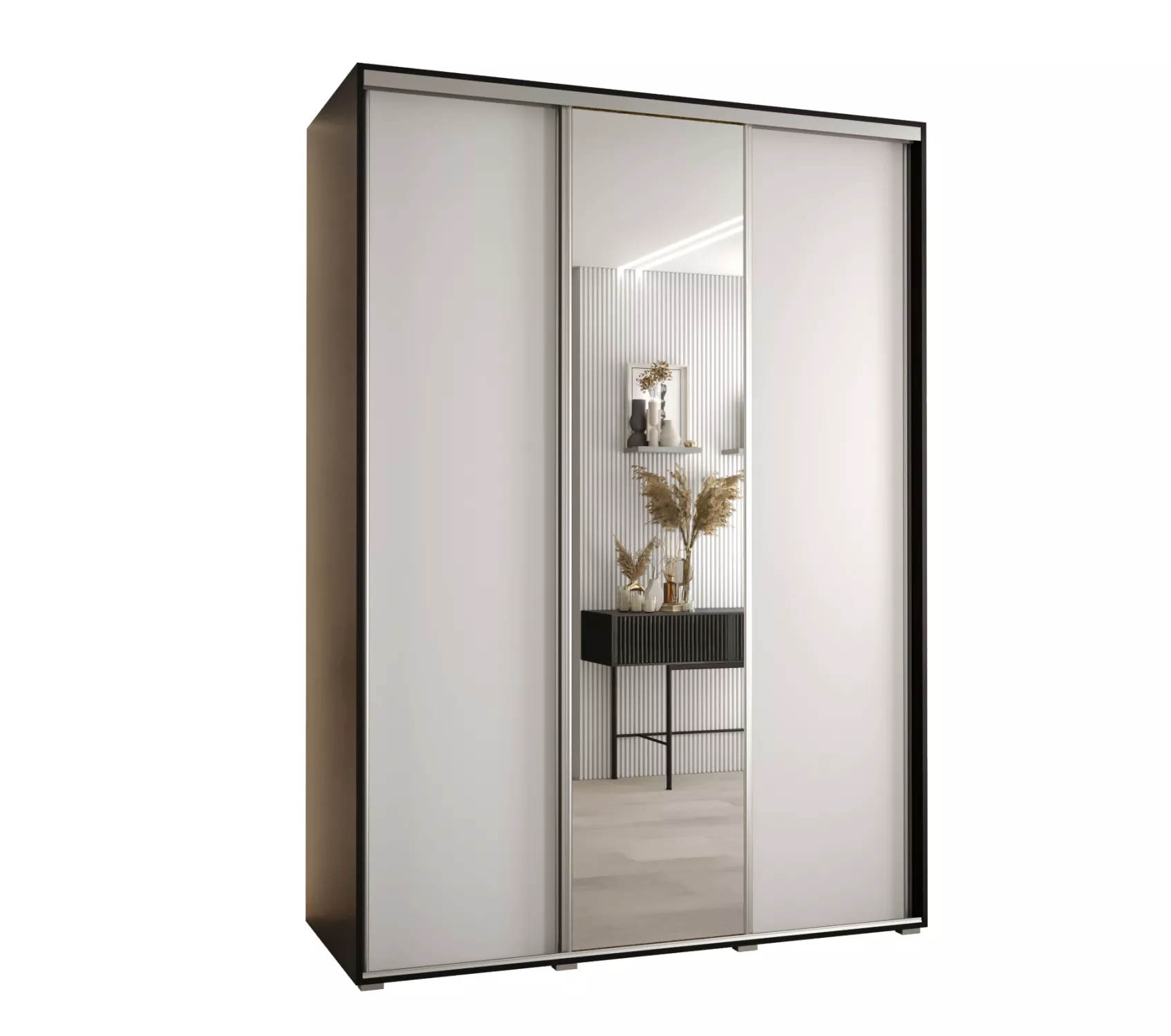 Velká šatní skříň se zrcadlem ASIRI zaujme svým moderním designem a praktickými prvky. Skříň má posuvné dveře, které se neotvírají do prostoru a ušetří tak spoustu místa. Vnitřek skříně lze uspořádat dle vašich potřeb.