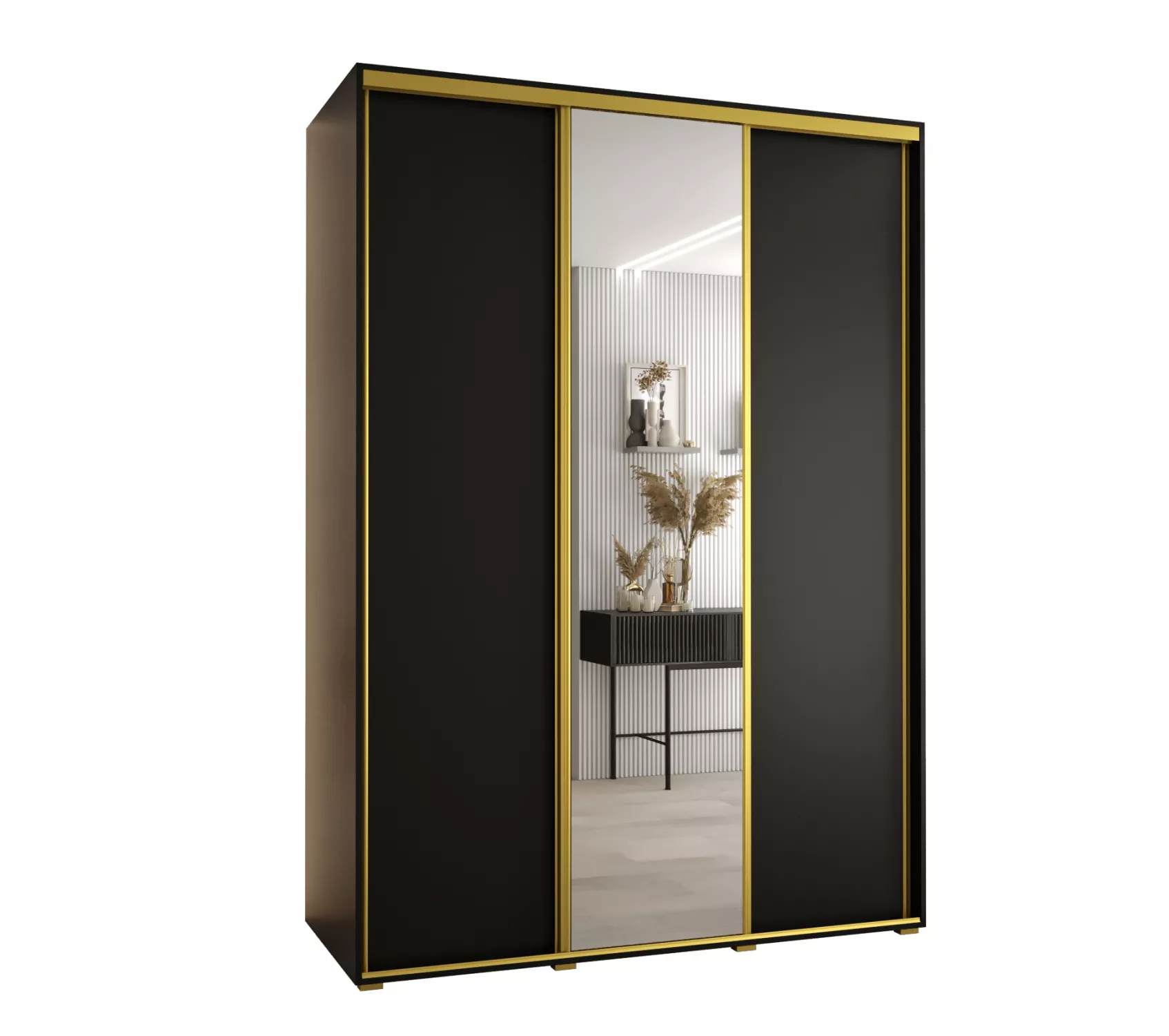 Šatní skříň ASIRI 3 - 180/60 cm, černá / zlatá