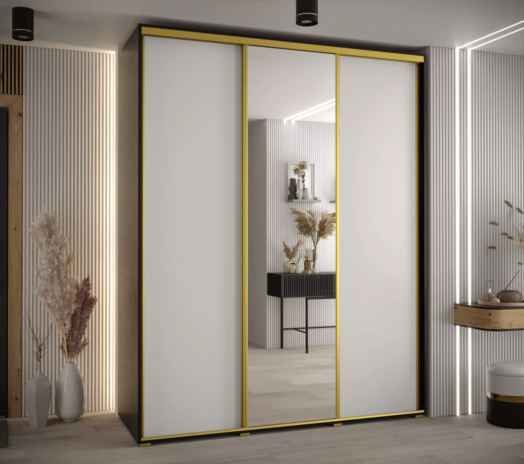Šatní skříň ASIRI 3 - 190/60 cm, černá / bílá / zlatá