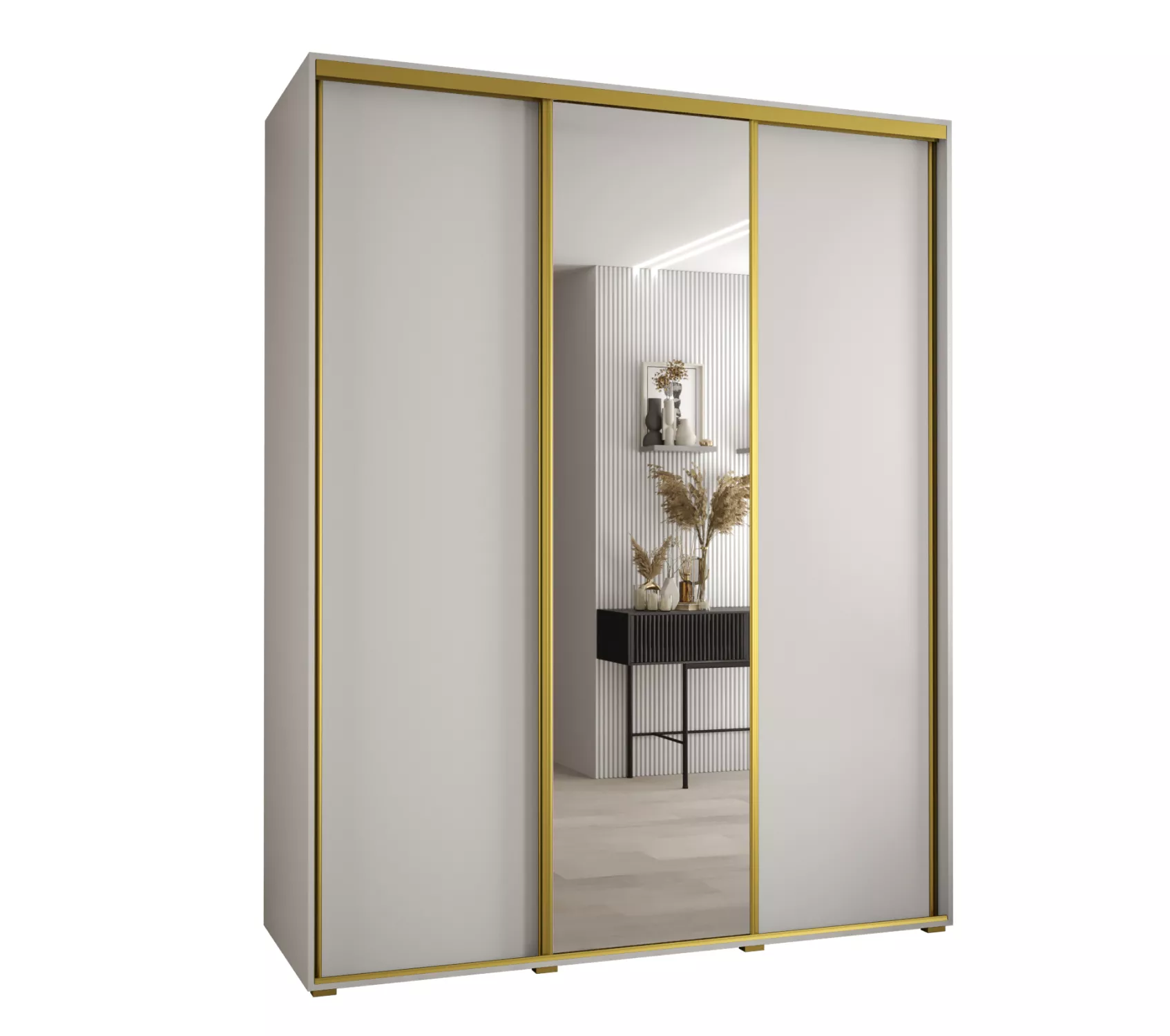 Šatní skříň ASIRI 3 - 200/60 cm, bílá / zlatá