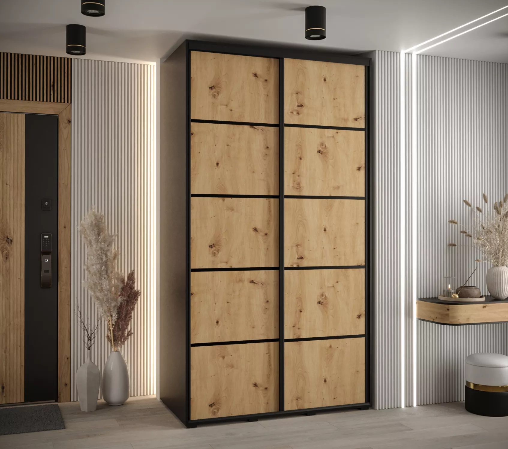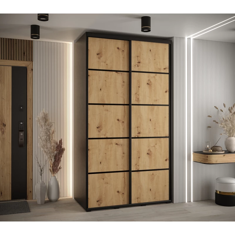 Šatní skříň ASIRI 4 - 130/60 cm, černá / dub artisan / černá