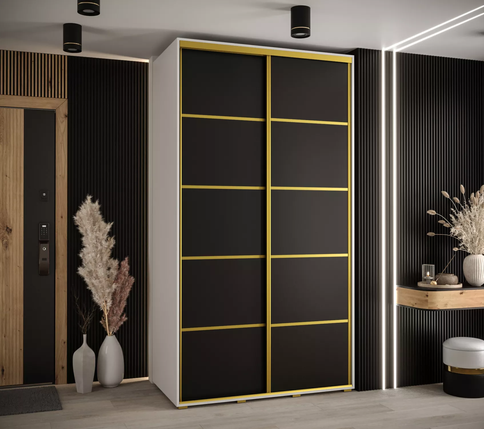 Šatní skříň ASIRI 4 - 140/60 cm, bílá / černá / zlatá