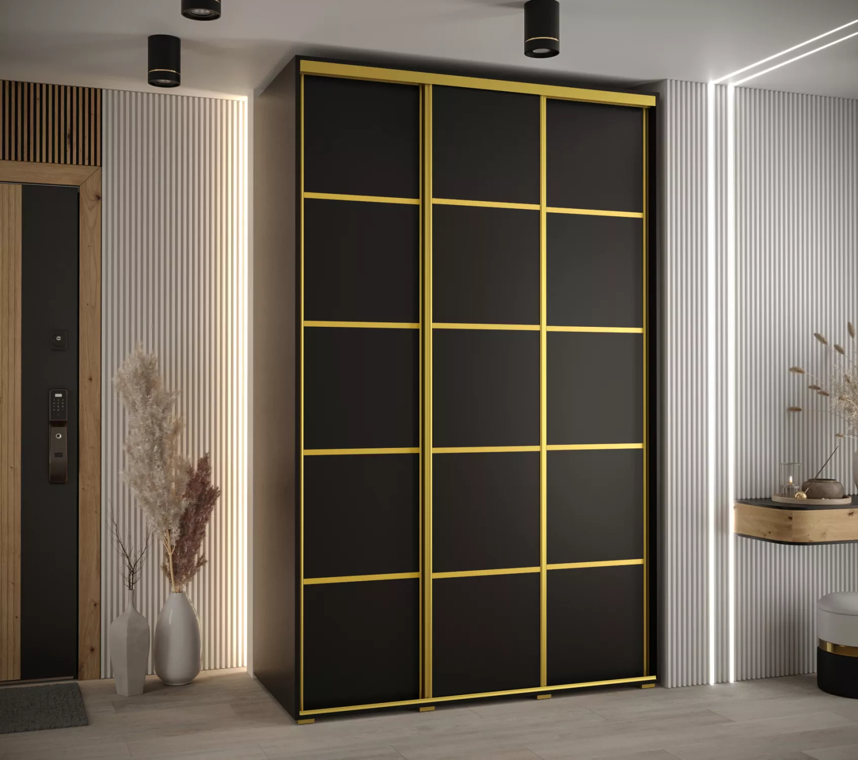 Šatní skříň ASIRI 4 - 160/60 cm, černá / zlatá