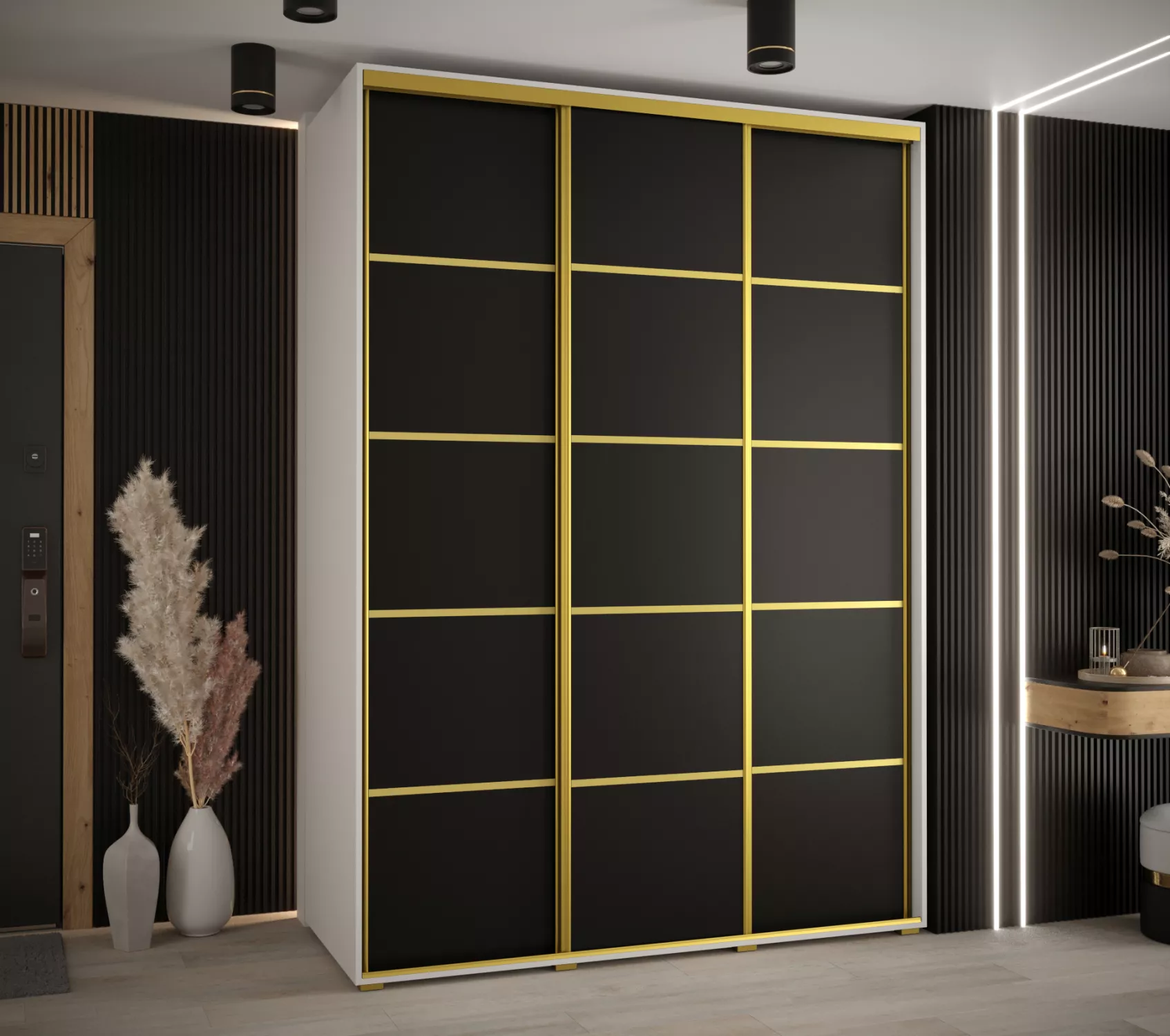 Šatní skříň ASIRI 4 - 170/60 cm, bílá / černá / zlatá