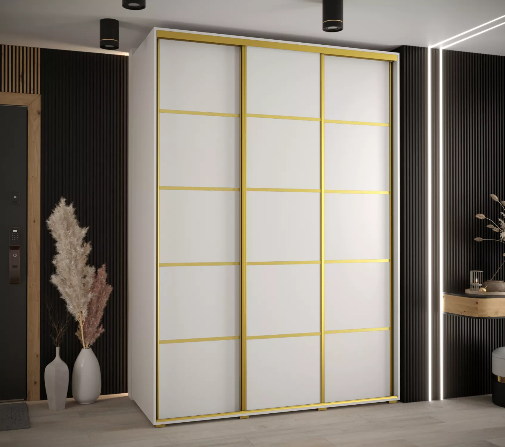 Šatní skříň ASIRI 4 - 180/60 cm, bílá / zlatá