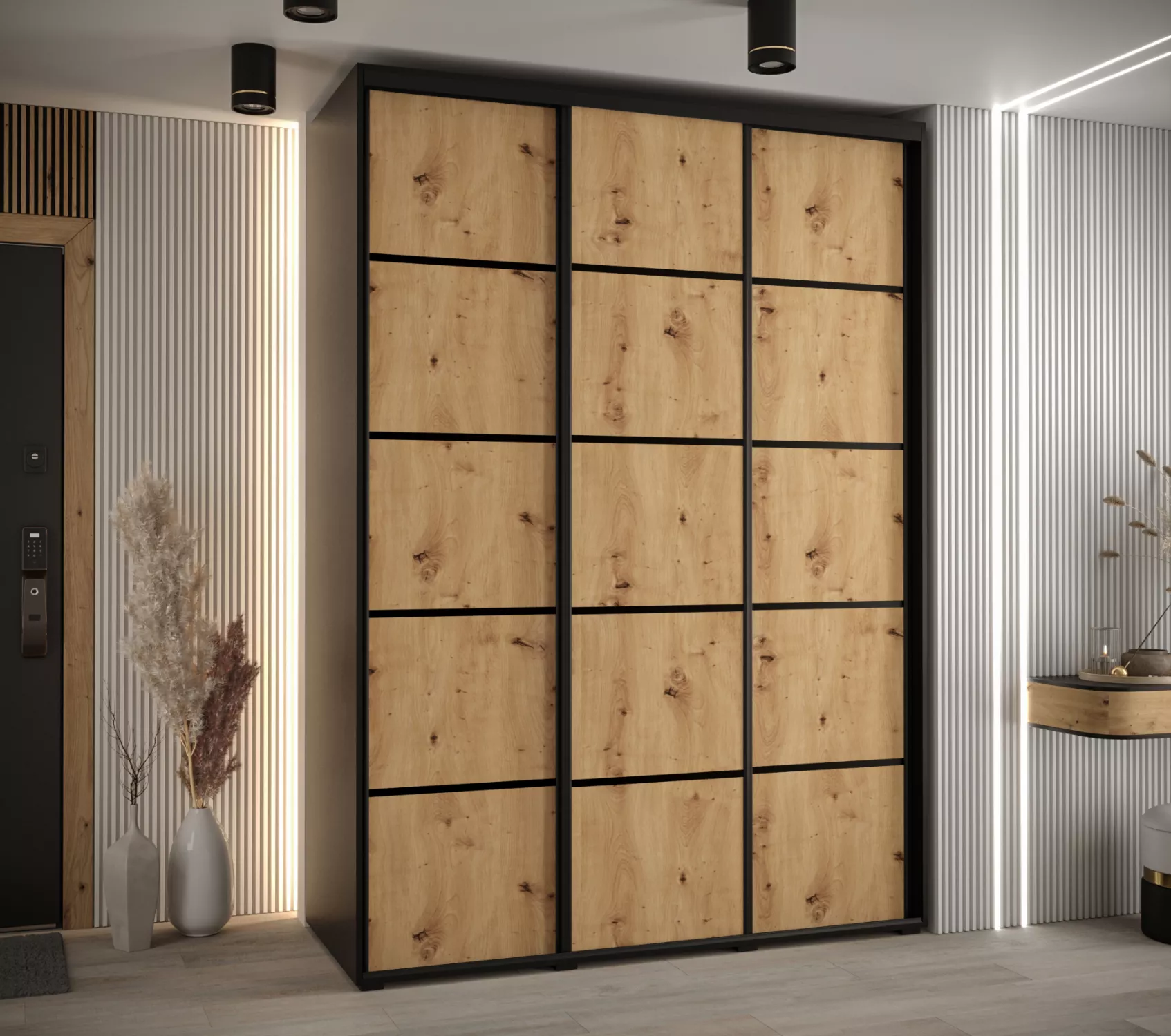 Šatní skříň ASIRI 4 - 180/60 cm, černá / dub artisan / černá