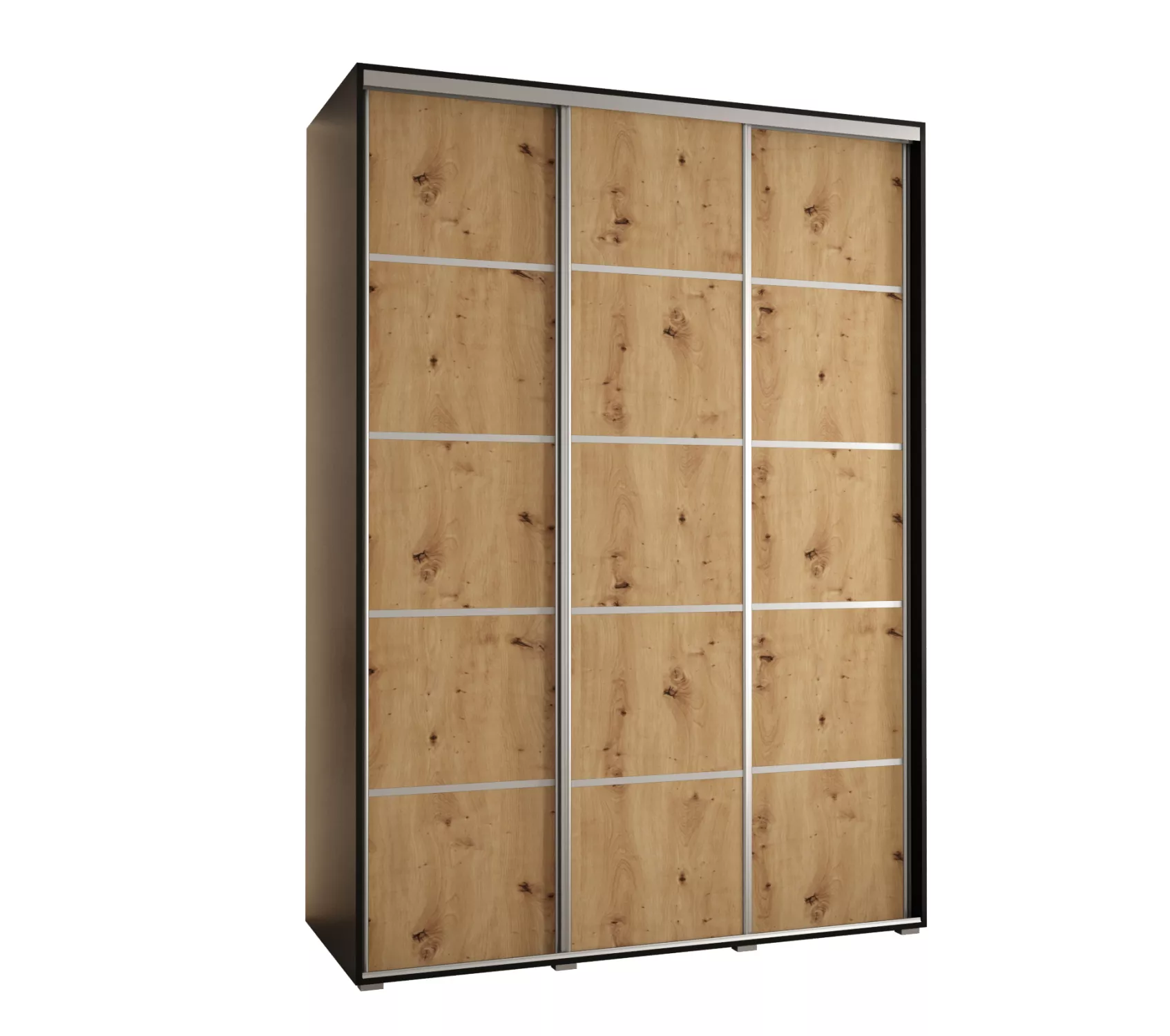 Šatní skříň ASIRI 4 - 180/60 cm, černá / dub artisan / stříbrná