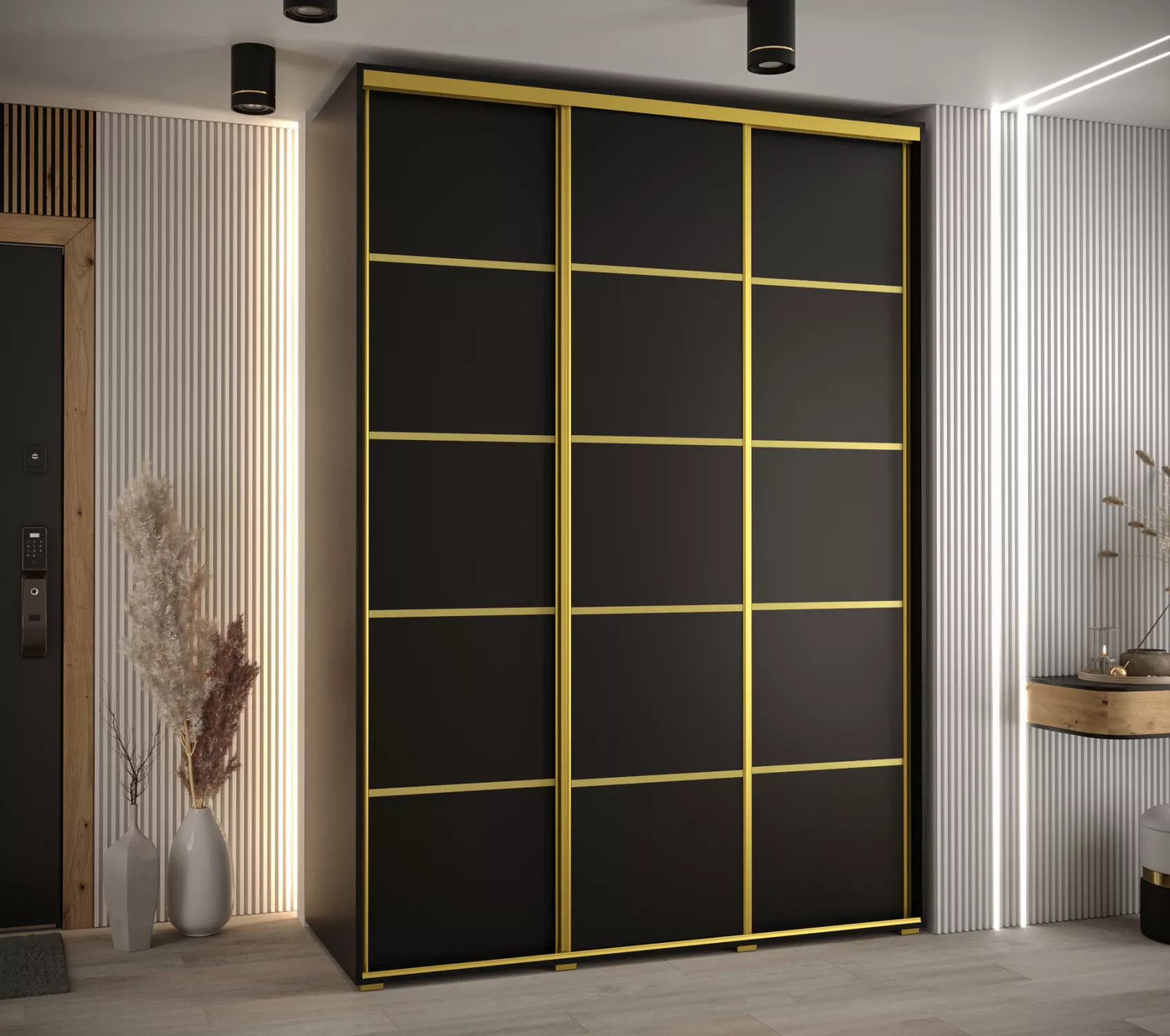 Šatní skříň ASIRI 4 - 180/60 cm, černá / zlatá