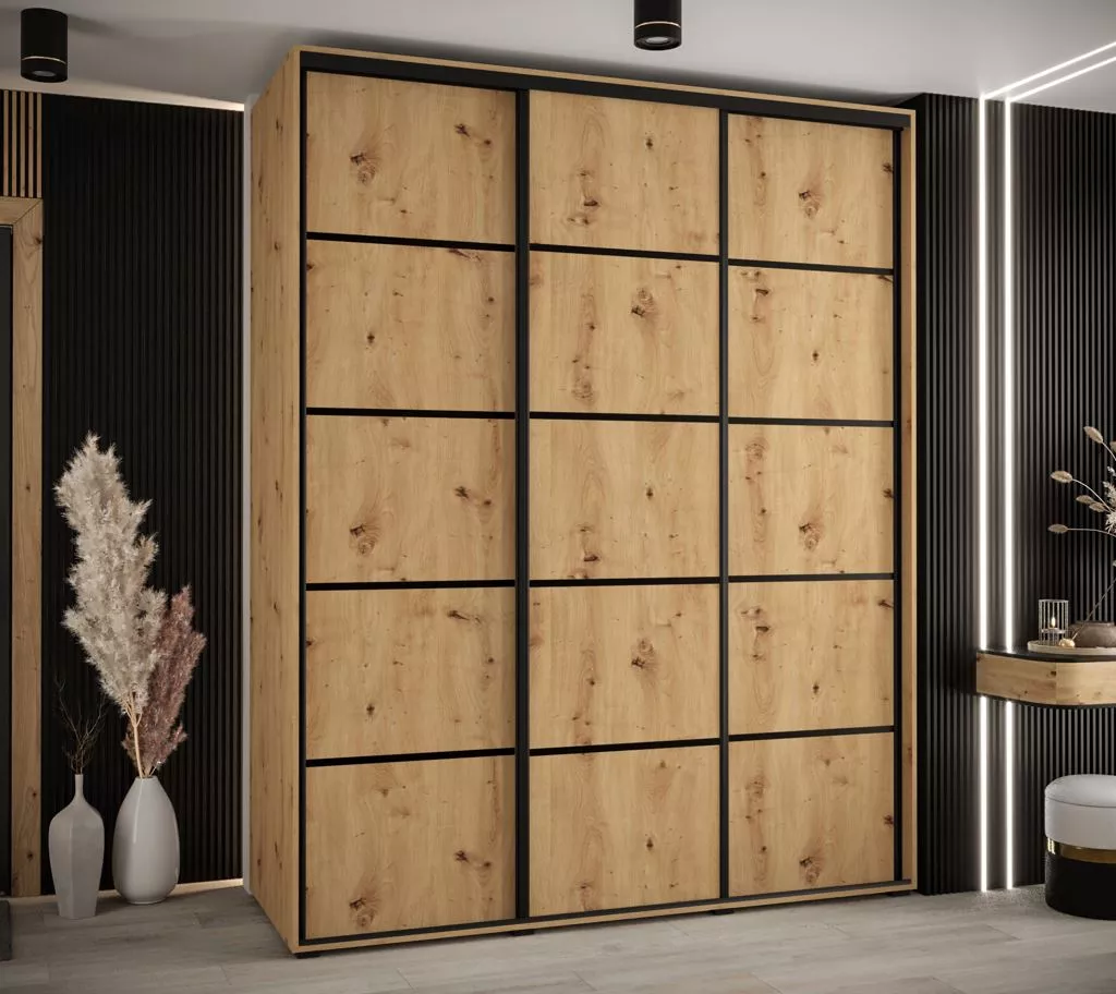 Šatní skříň ASIRI 4 - 190/60 cm, dub artisan / černá
