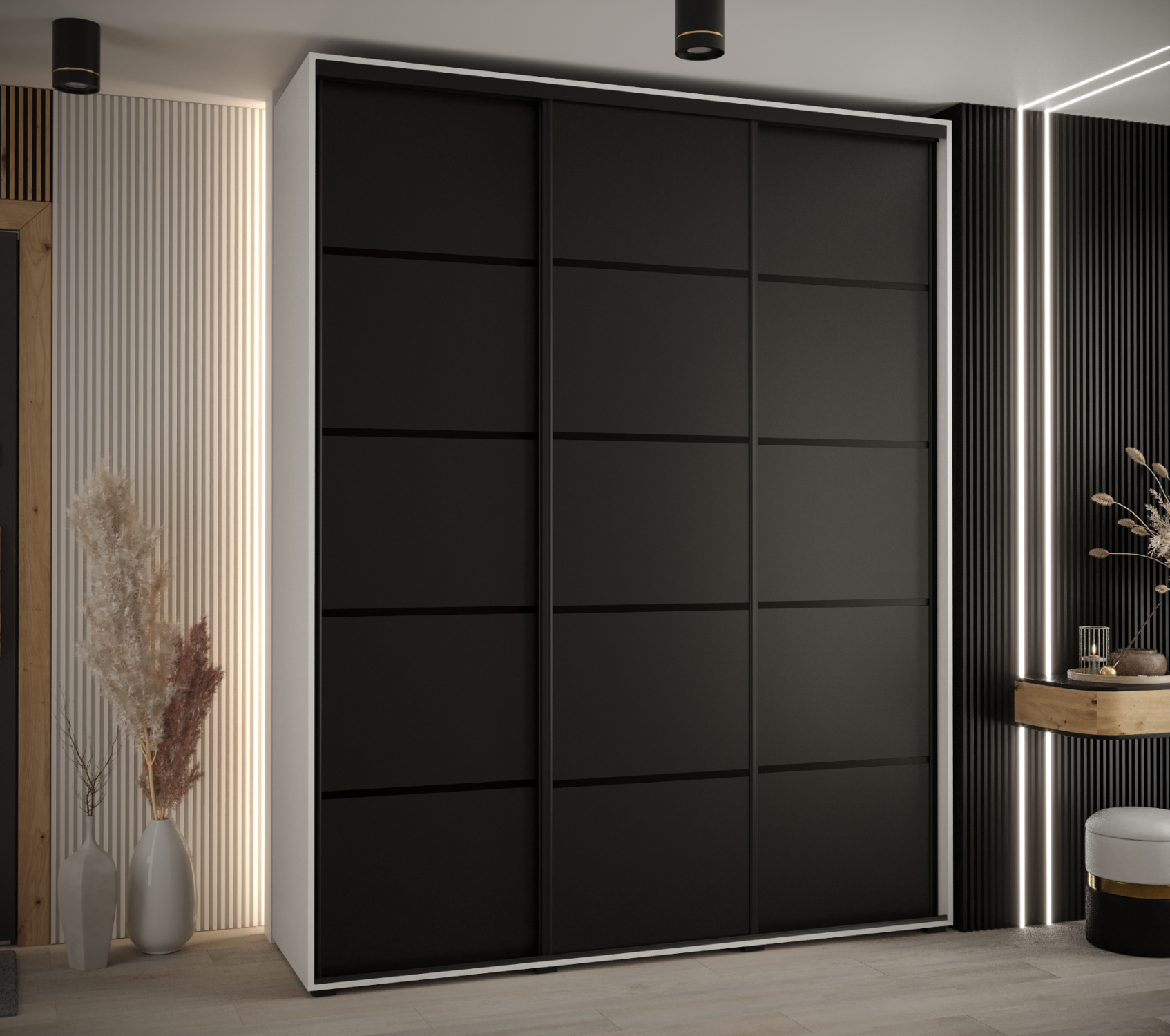 Šatní skříň ASIRI 4 - 200/60 cm, bílá / černá