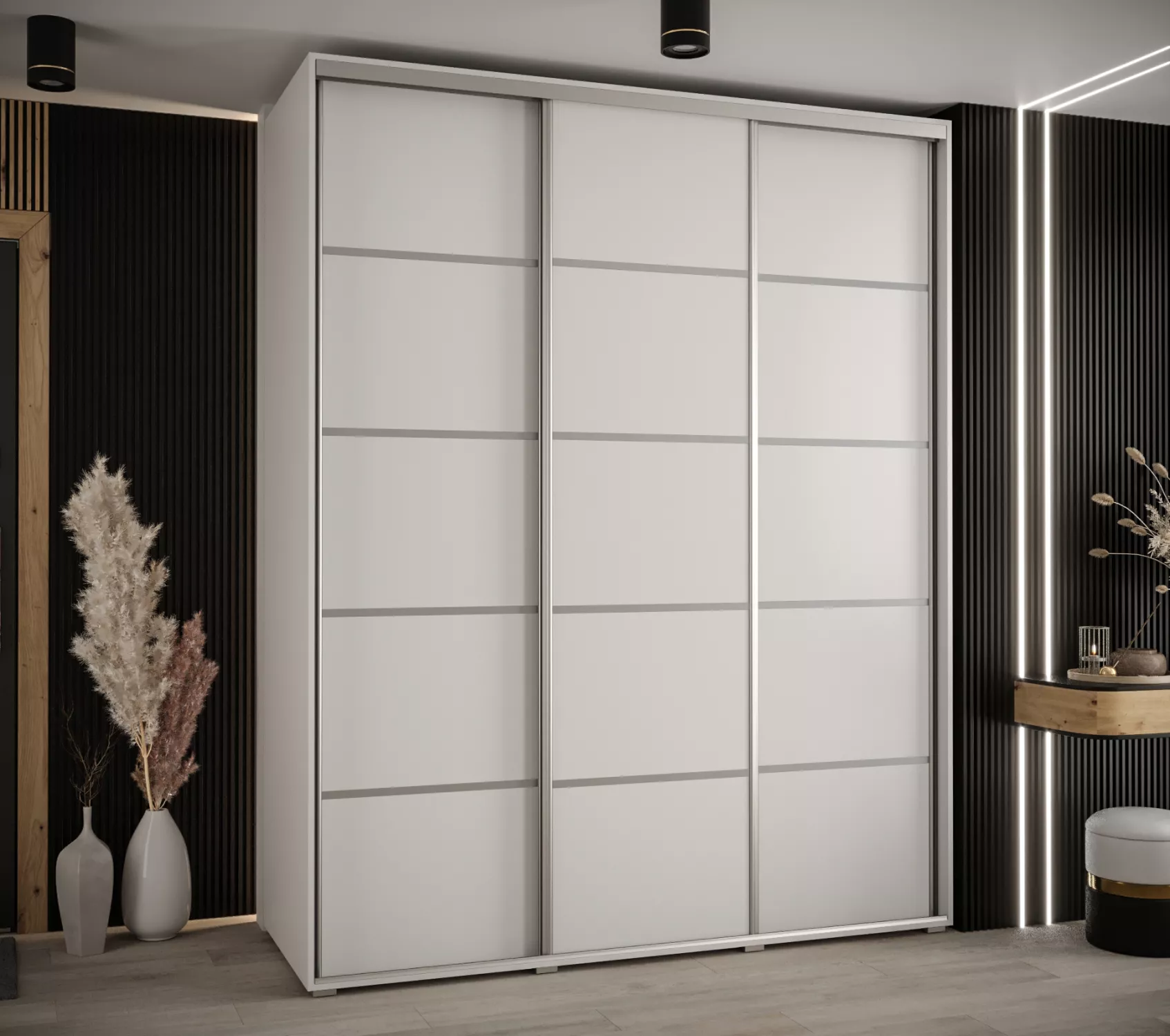 Šatní skříň ASIRI 4 - 200/60 cm, bílá / stříbrná