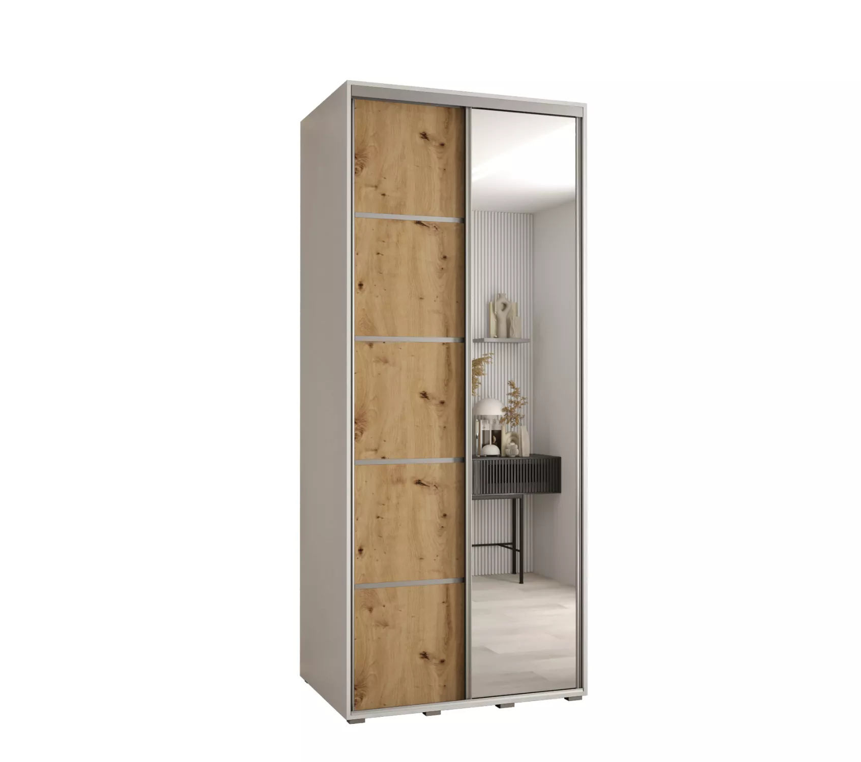 Šatní skříň ASIRI 5 - 100/60 cm, bílá / dub artisan / stříbrná