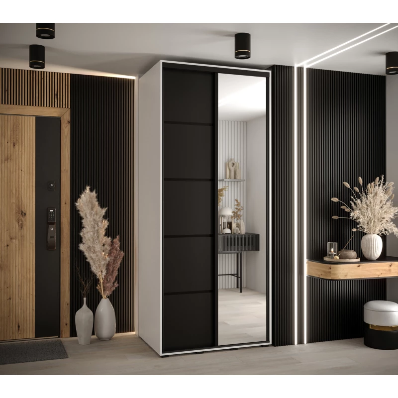 Šatní skříň ASIRI 5 - 100/60 cm, bílá / černá / černá