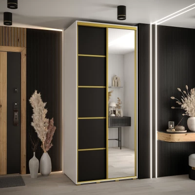 Šatní skříň ASIRI 5 - 100/60 cm, bílá / černá / zlatá
