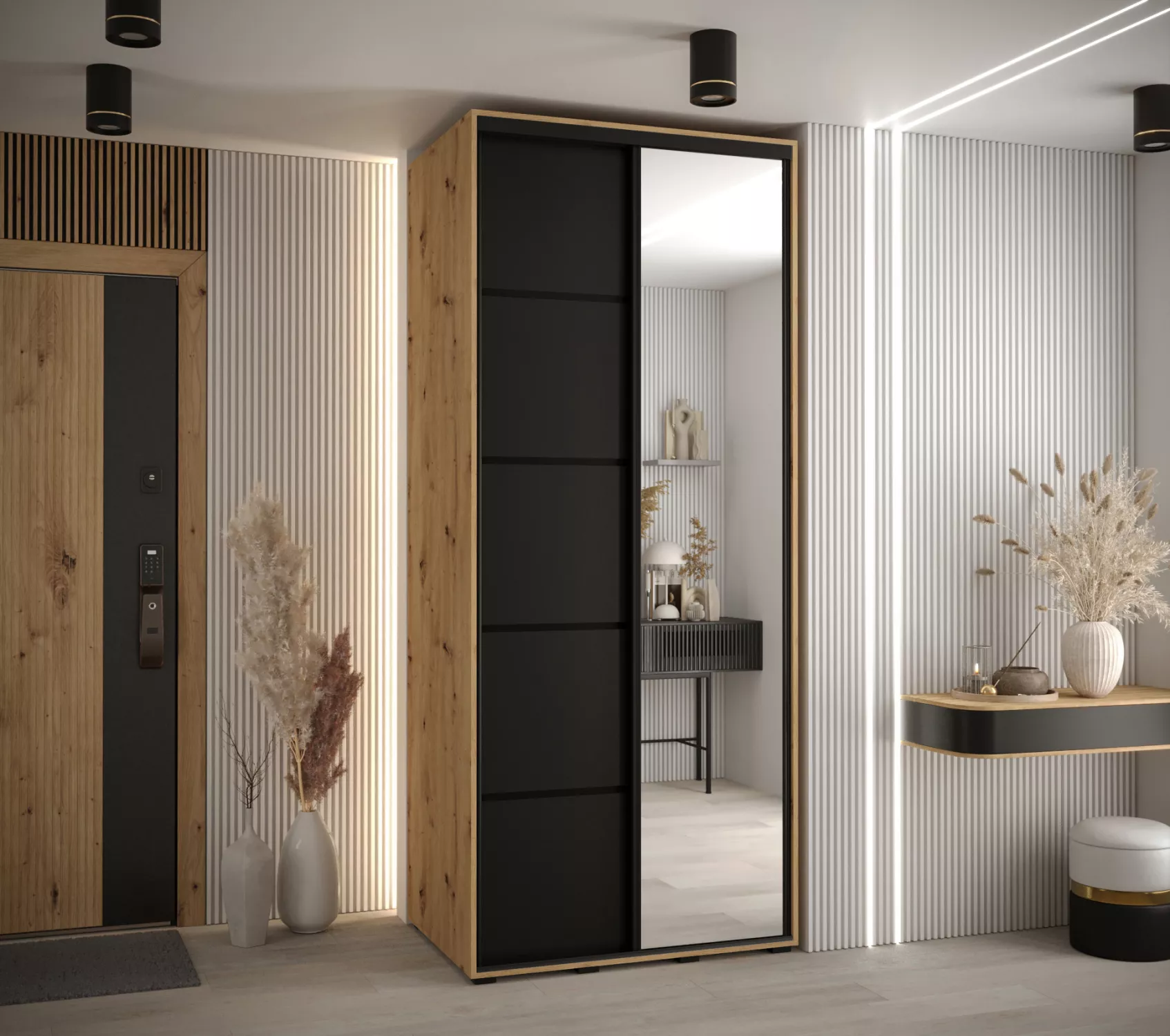Šatní skříň ASIRI 5 - 110/60 cm, dub artisan / černá / černá