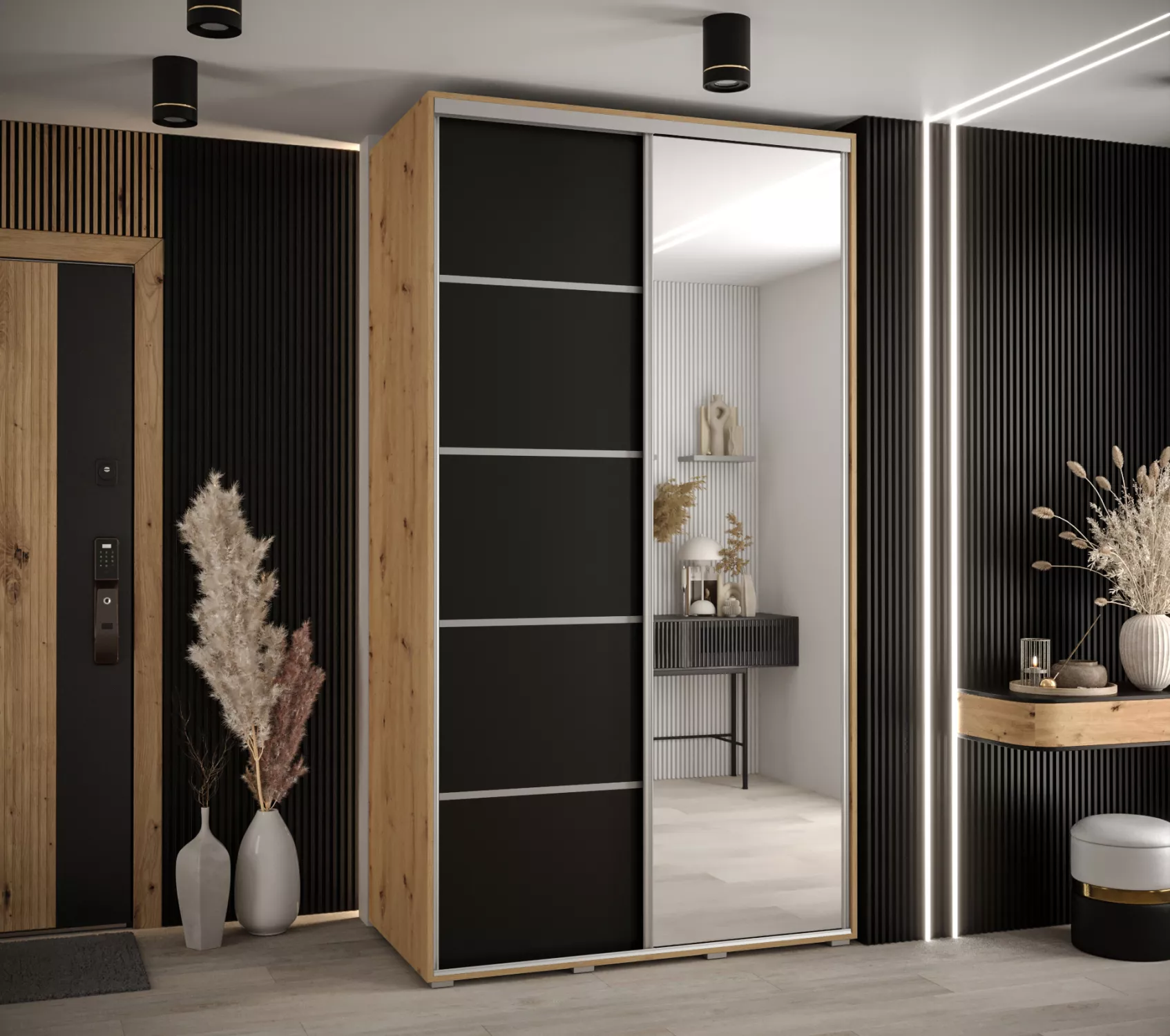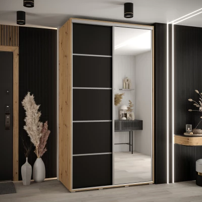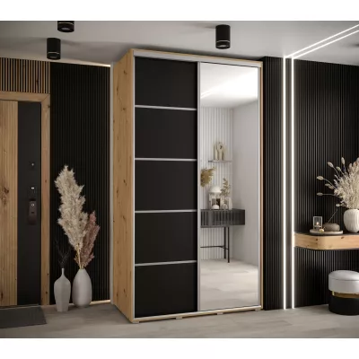 Šatní skříň ASIRI 5 - 130/60 cm, dub artisan / černá / stříbrná