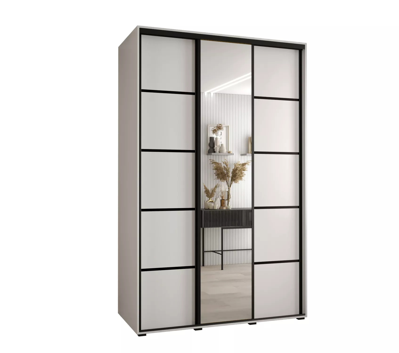 Vysoká zrcadlová šatní skříň ASIRI zaujme svým moderním designem a praktickými prvky. Skříň má posuvné dveře, které se neotvírají do prostoru a ušetří tak spoustu místa. Vnitřek skříně lze uspořádat dle vašich potřeb.