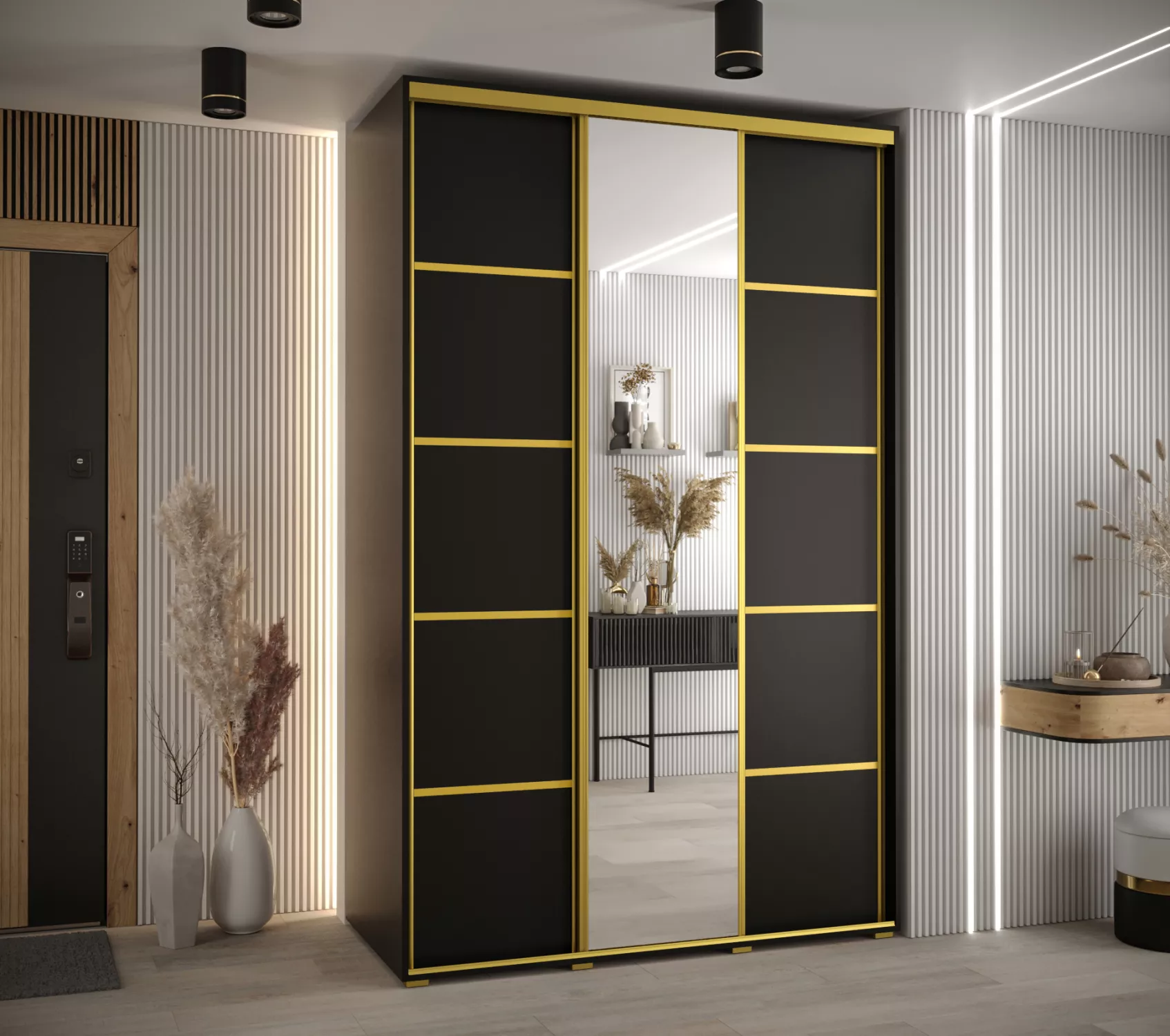 Šatní skříň ASIRI 5 - 150/60 cm, černá / zlatá