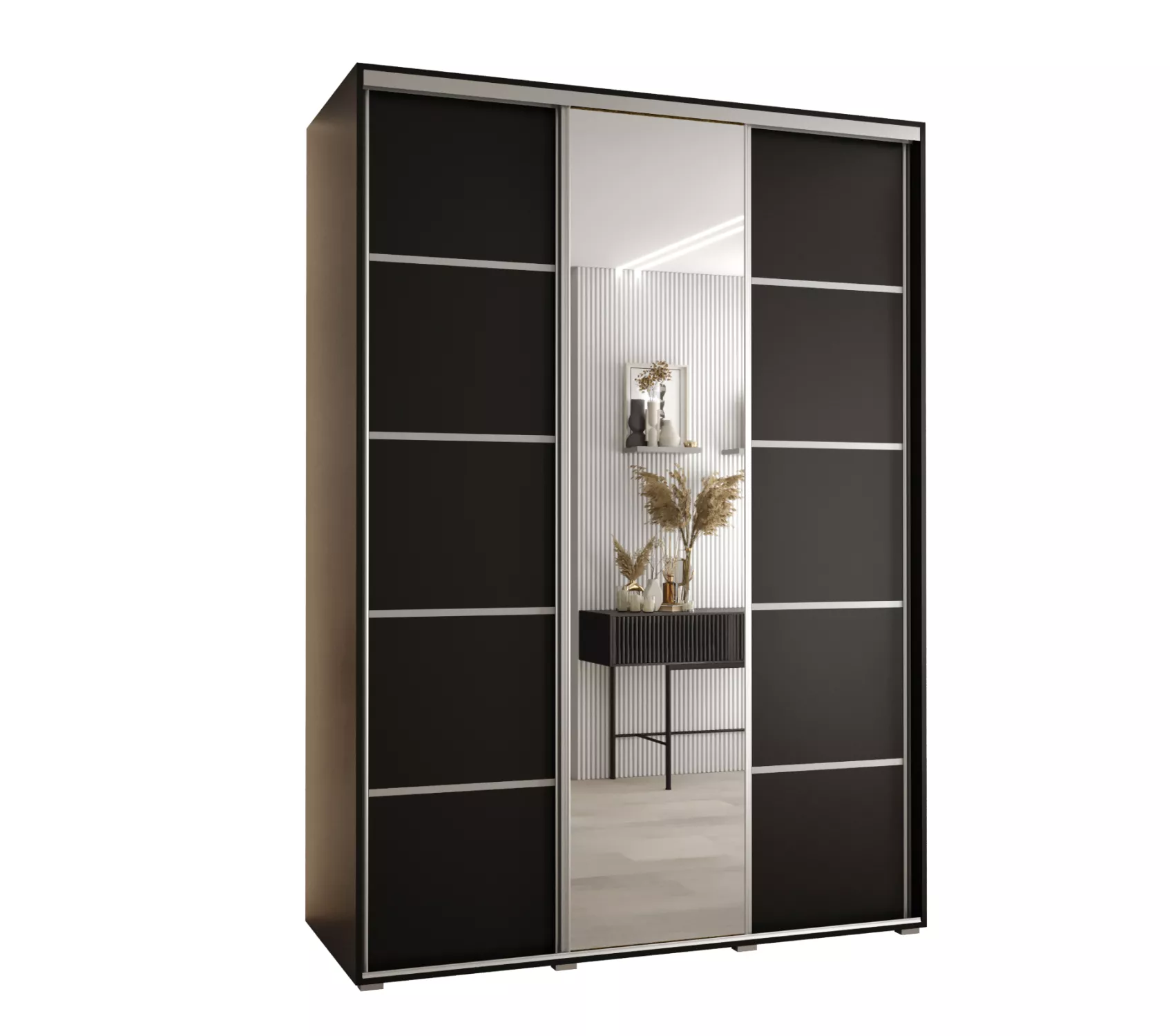 Šatní skříň ASIRI 5 - 170/60 cm, černá / stříbrná