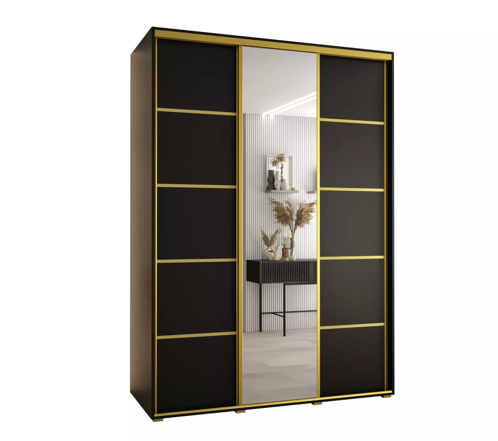 Šatní skříň ASIRI 5 - 170/60 cm, černá / zlatá