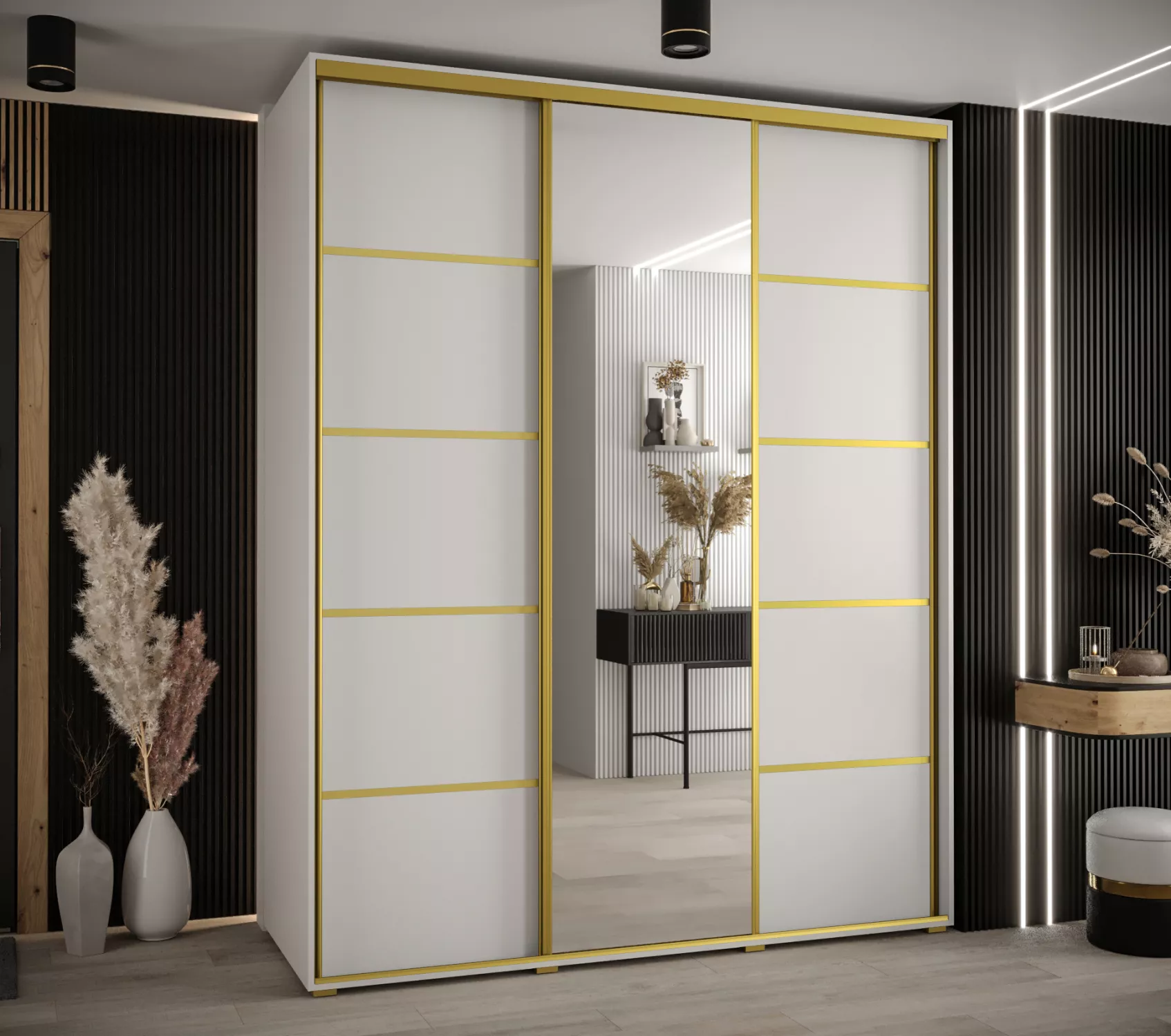 Šatní skříň ASIRI 5 - 200/60 cm, bílá / zlatá