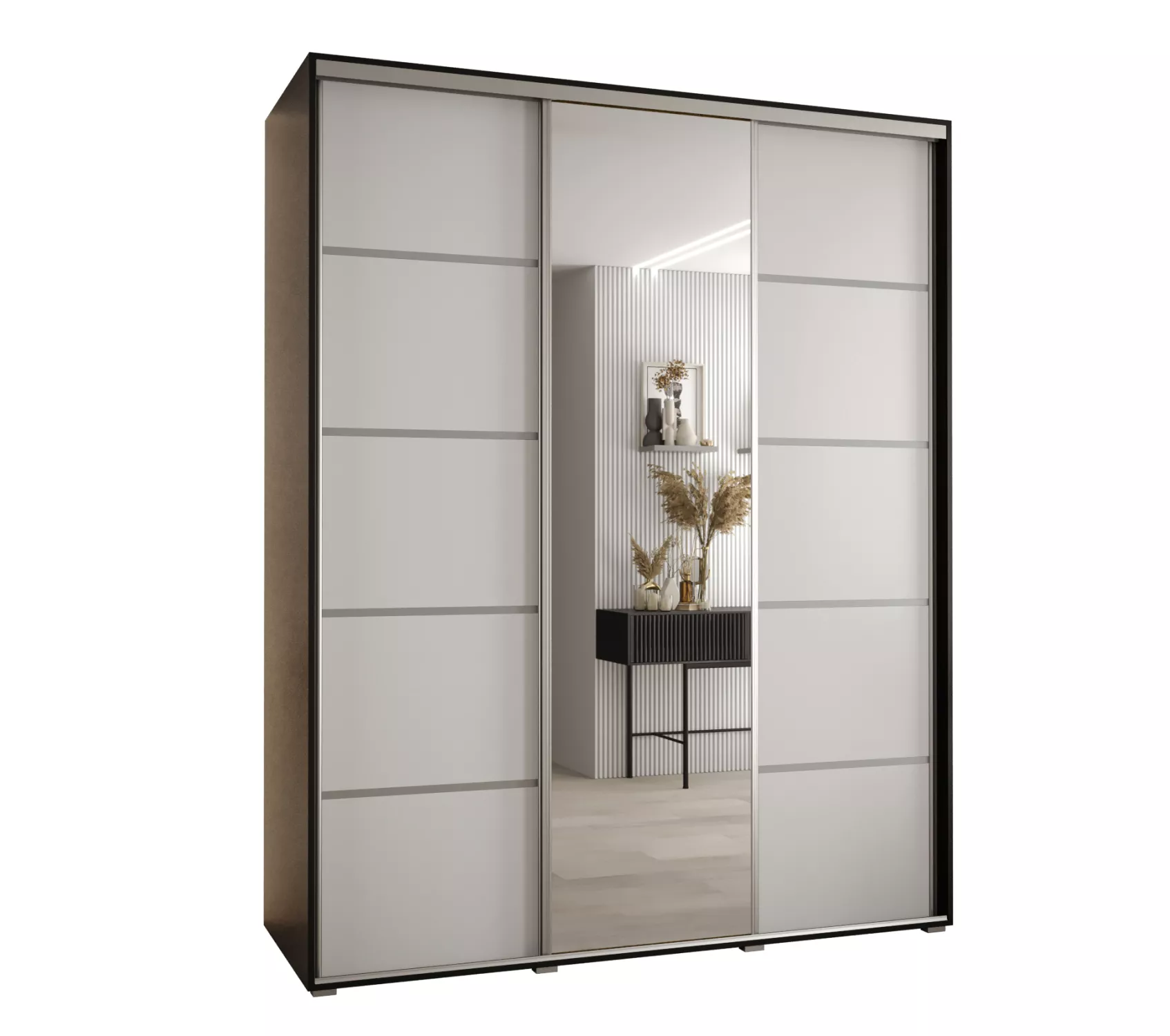 Šatní skříň ASIRI zaujme svým moderním designem a praktickými prvky. Šatní skříň má posuvné dveře, které se neotvírají do prostoru a ušetří tak spoustu místa.