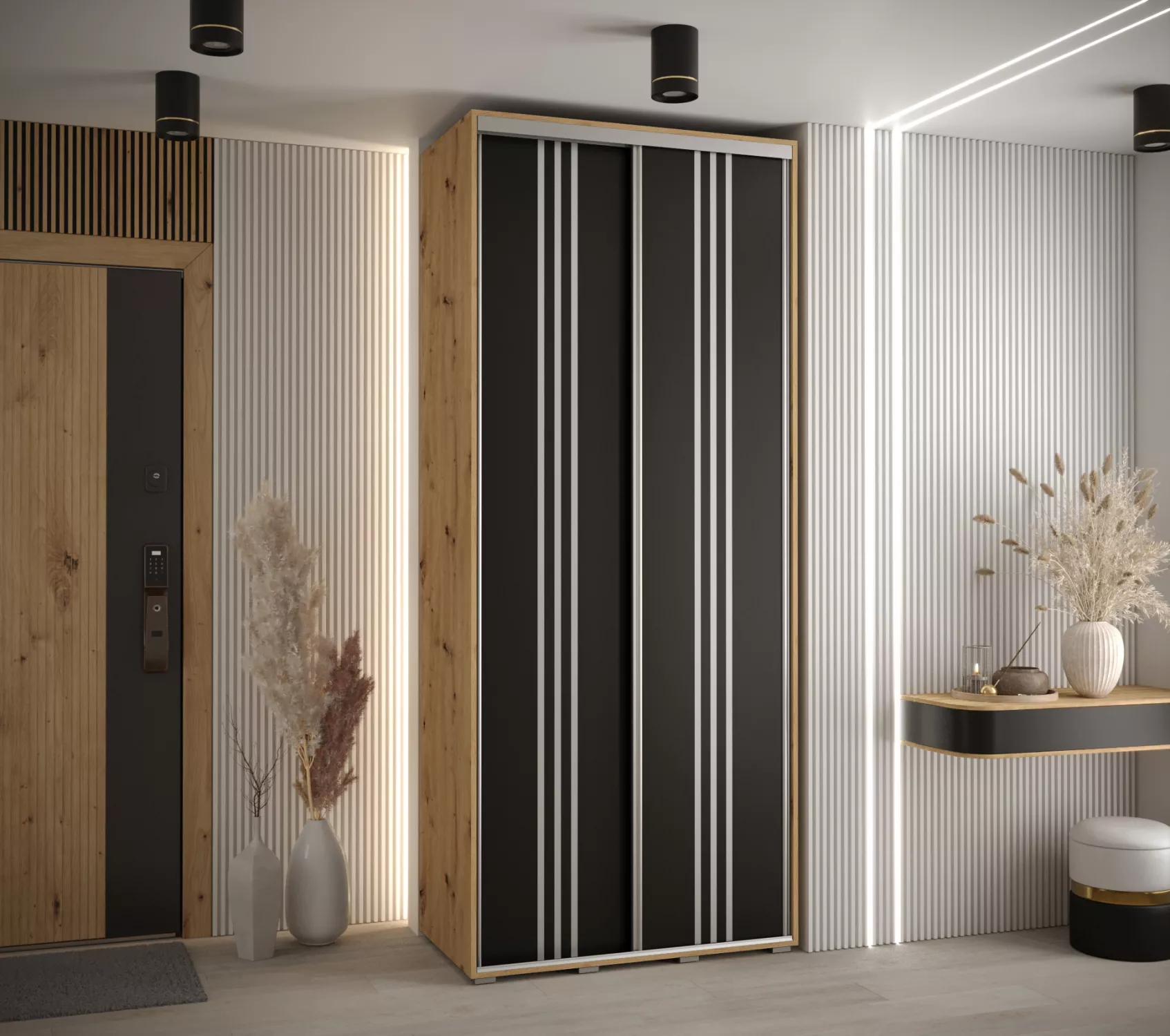 Šatní skříň ASIRI 6 - 100/60 cm, dub artisan / černá / stříbrná