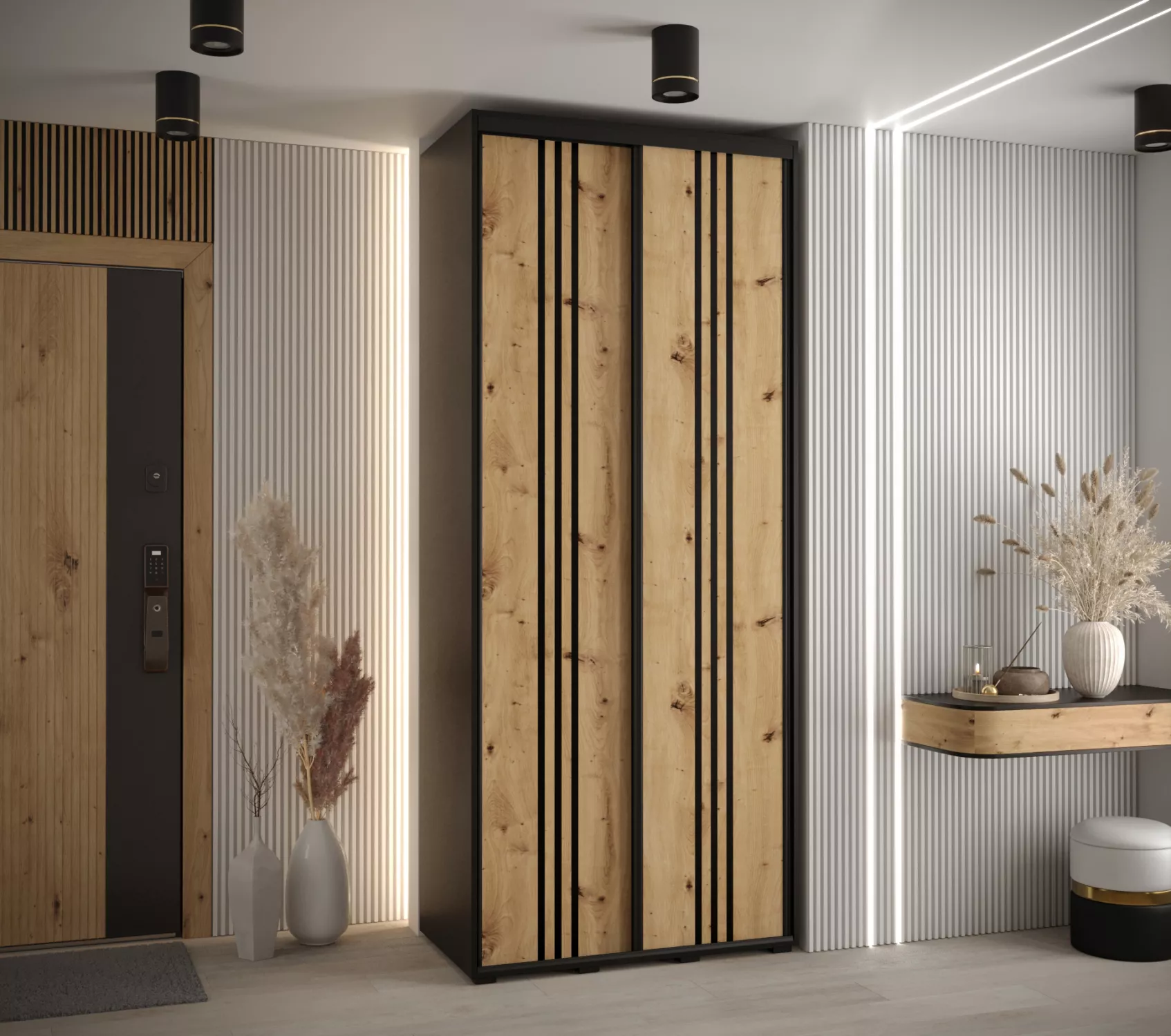 Šatní skříň ASIRI 6 - 120/60 cm, černá / dub artisan / černá