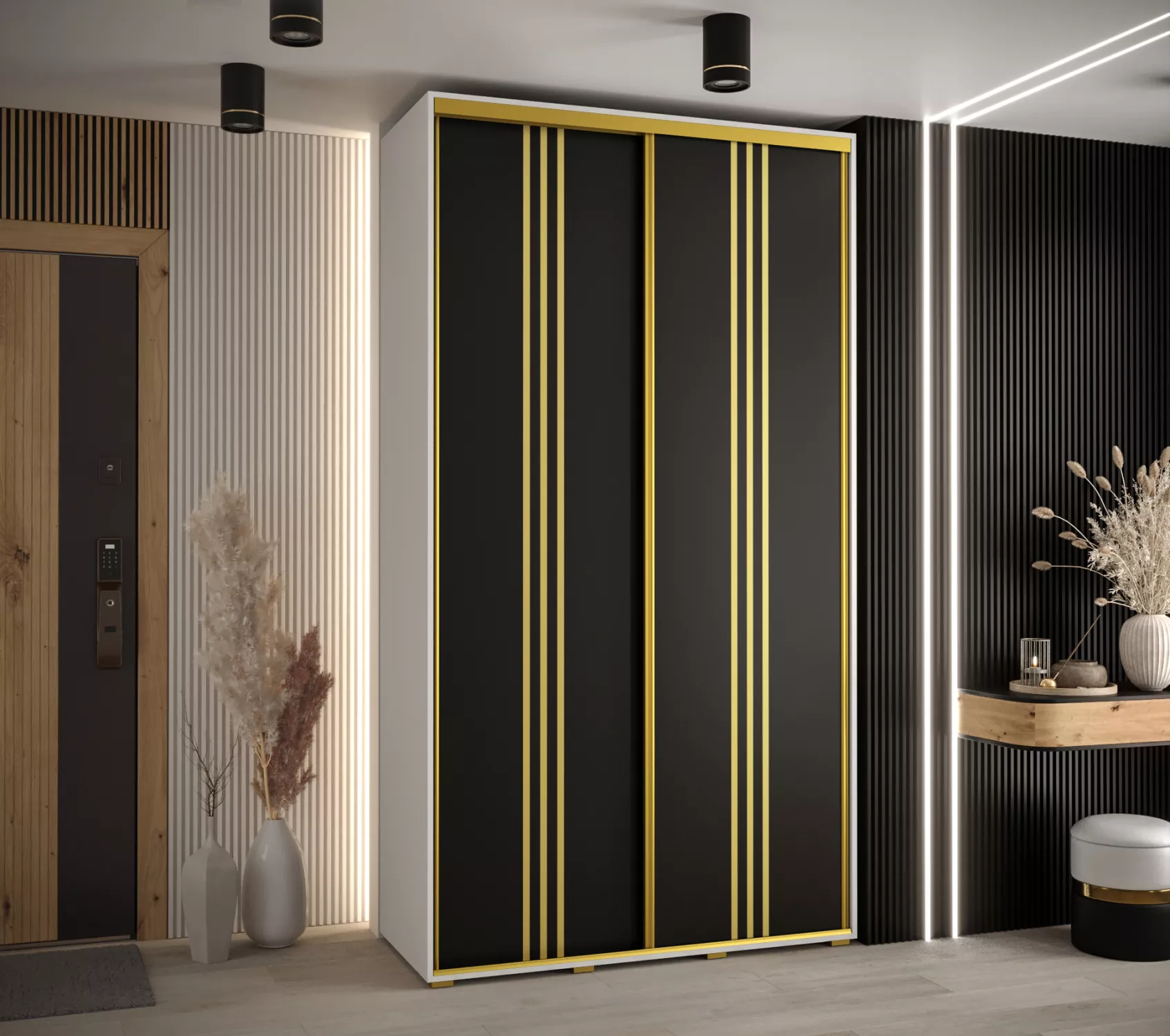 Šatní skříň ASIRI 6 - 130/60 cm, bílá / černá / zlatá