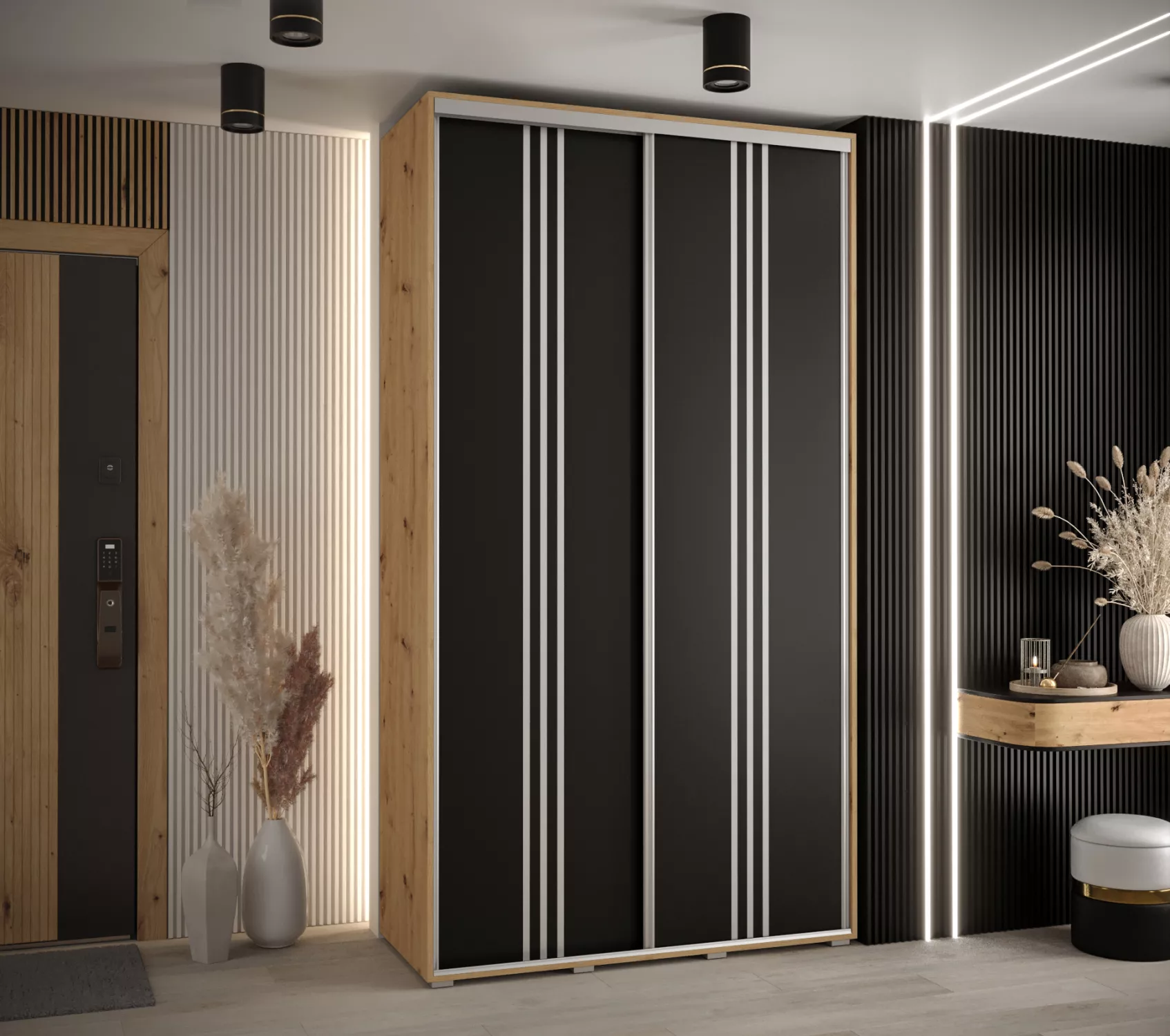 Šatní skříň ASIRI 6 - 140/60 cm, dub artisan / černá / stříbrná