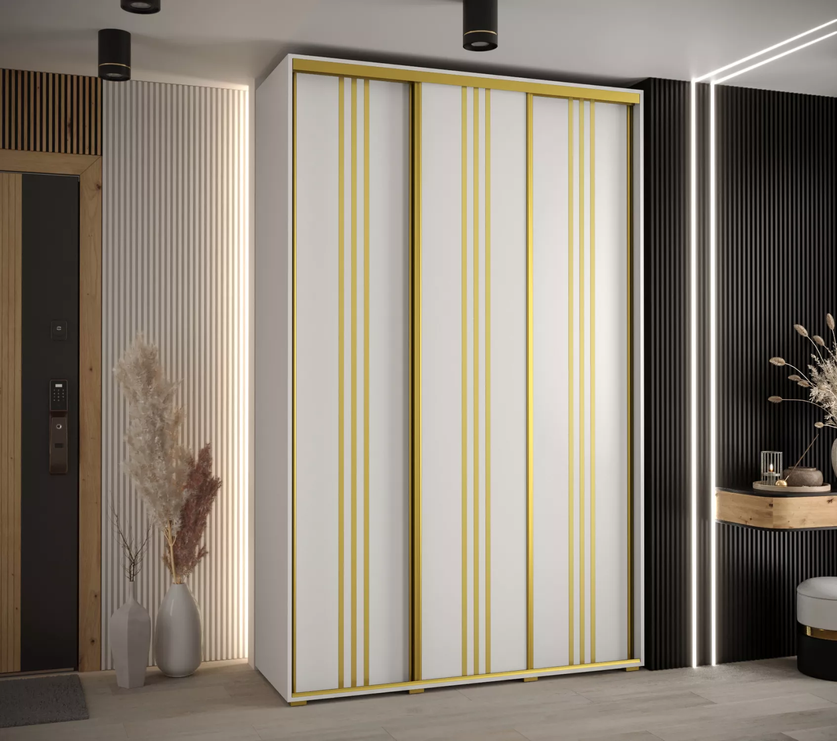 Šatní skříň ASIRI 6 - 150/60 cm, bílá / zlatá