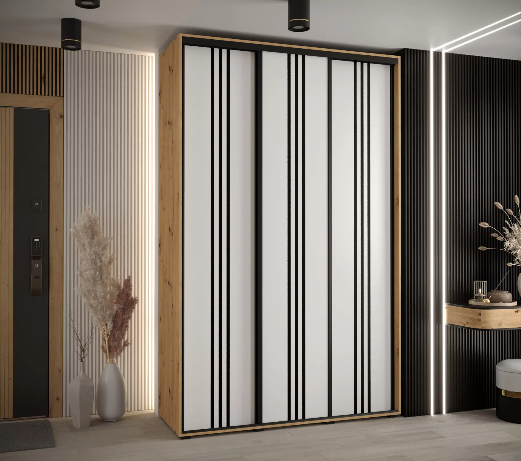 Šatní skříň ASIRI 6 - 150/60 cm, dub artisan / bílá / černá
