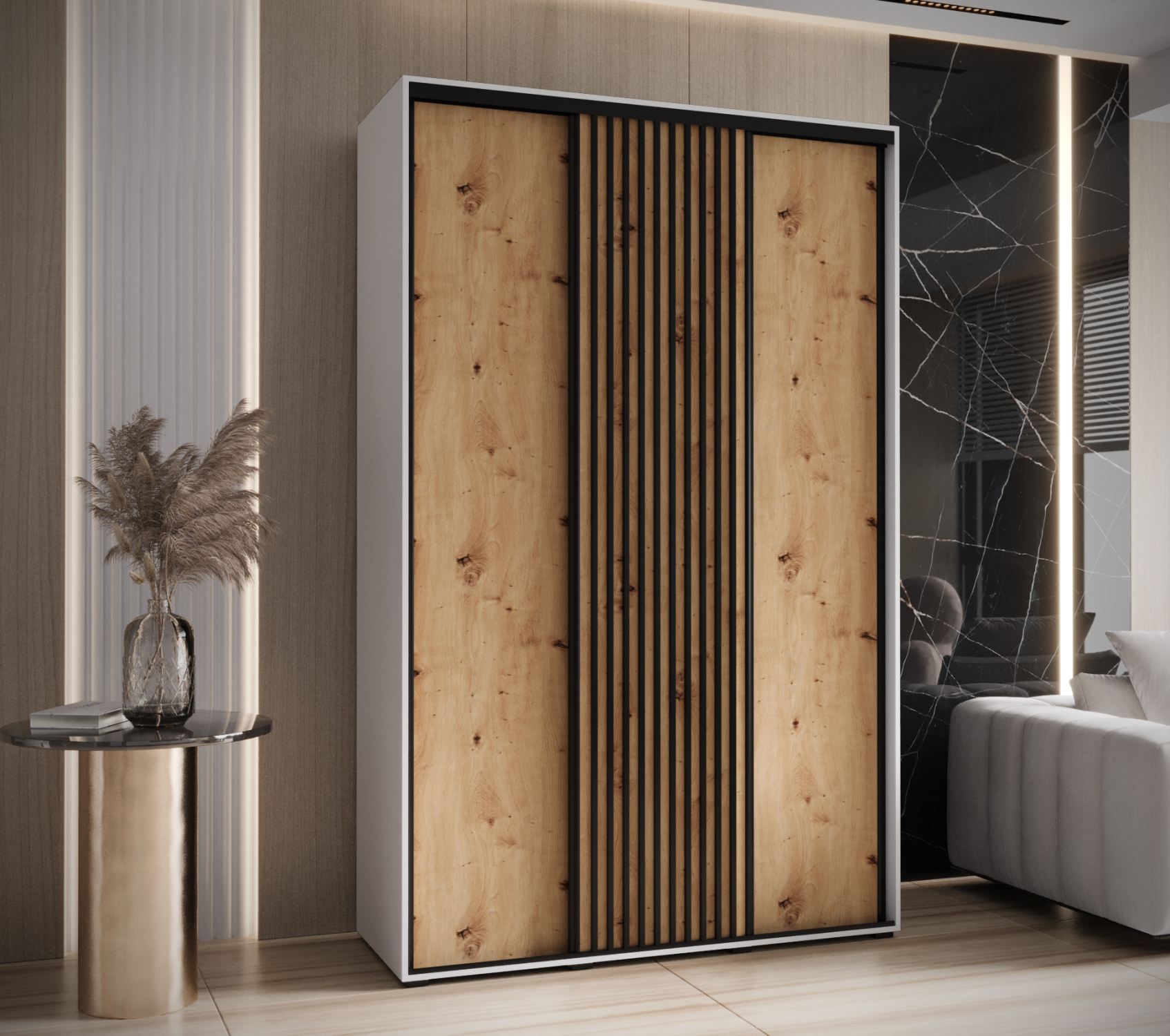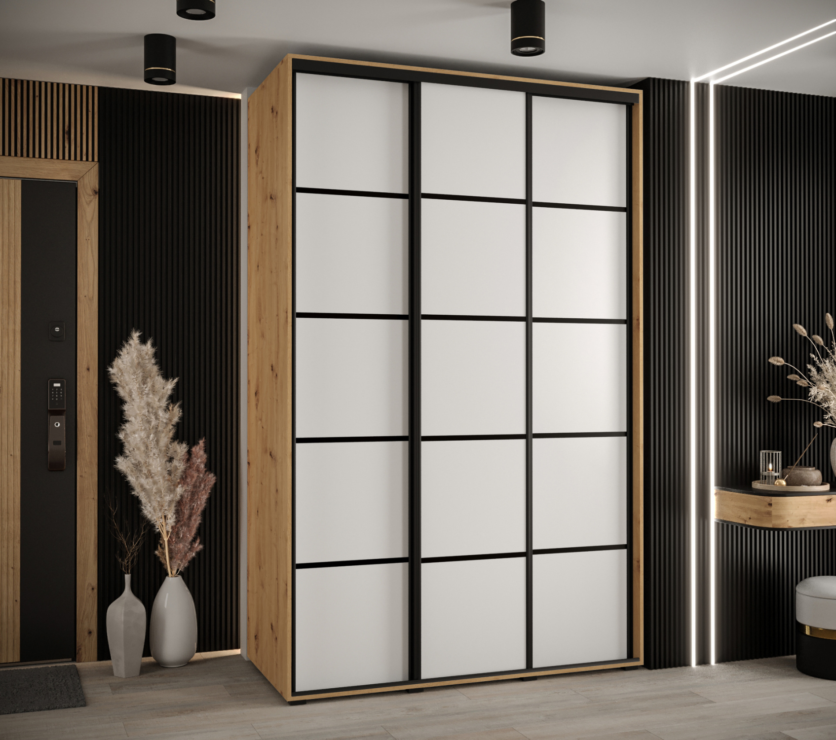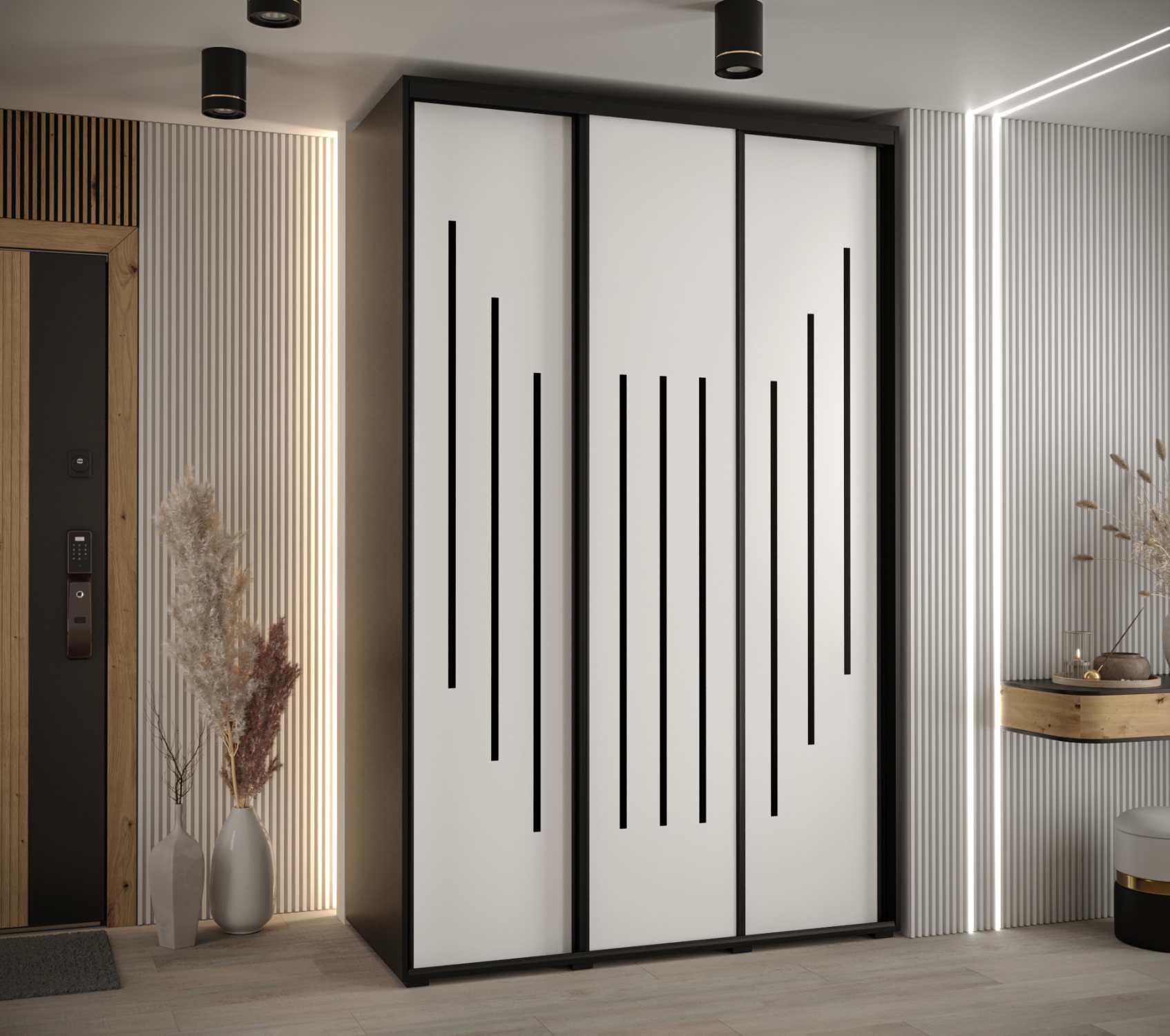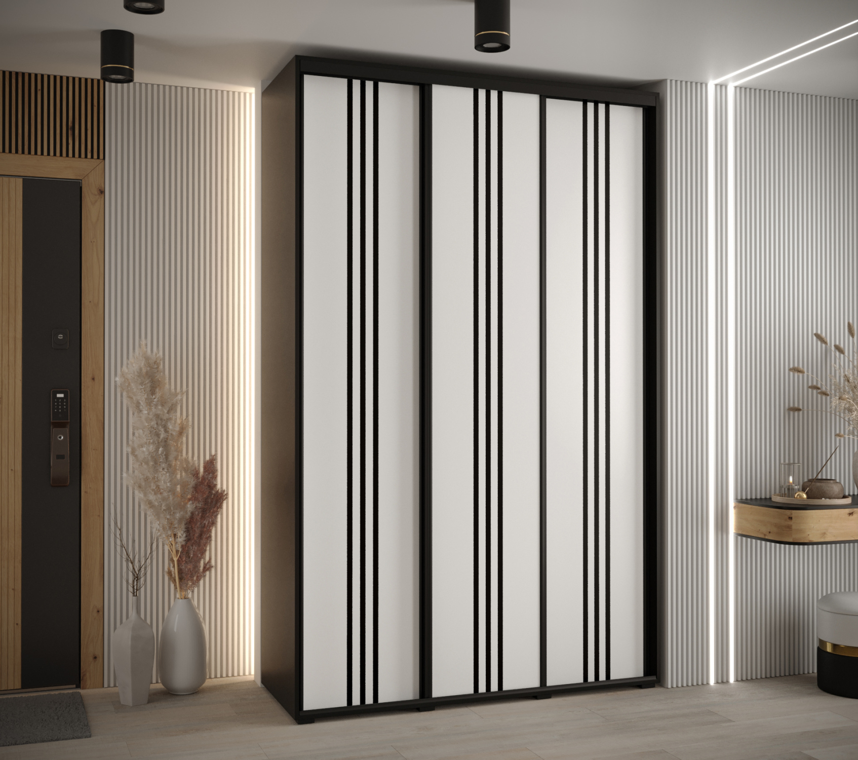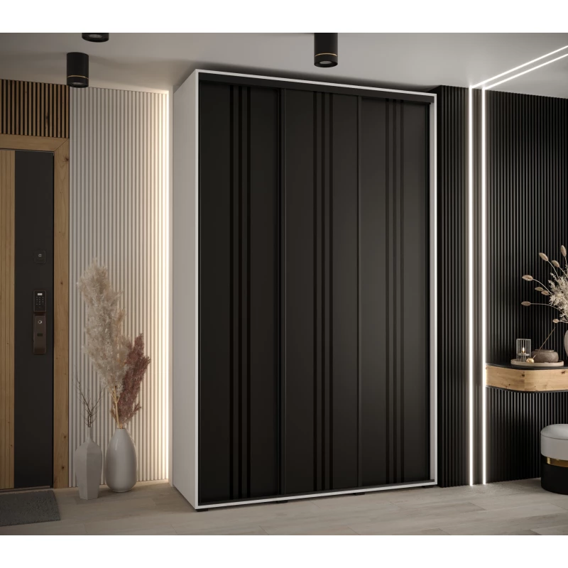 Šatní skříň ASIRI 6 - 160/60 cm, bílá / černá / černá