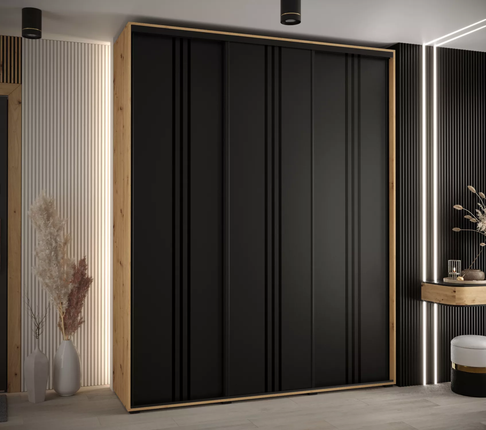 Šatní skříň ASIRI 6 - 190/60 cm, dub artisan / černá / černá