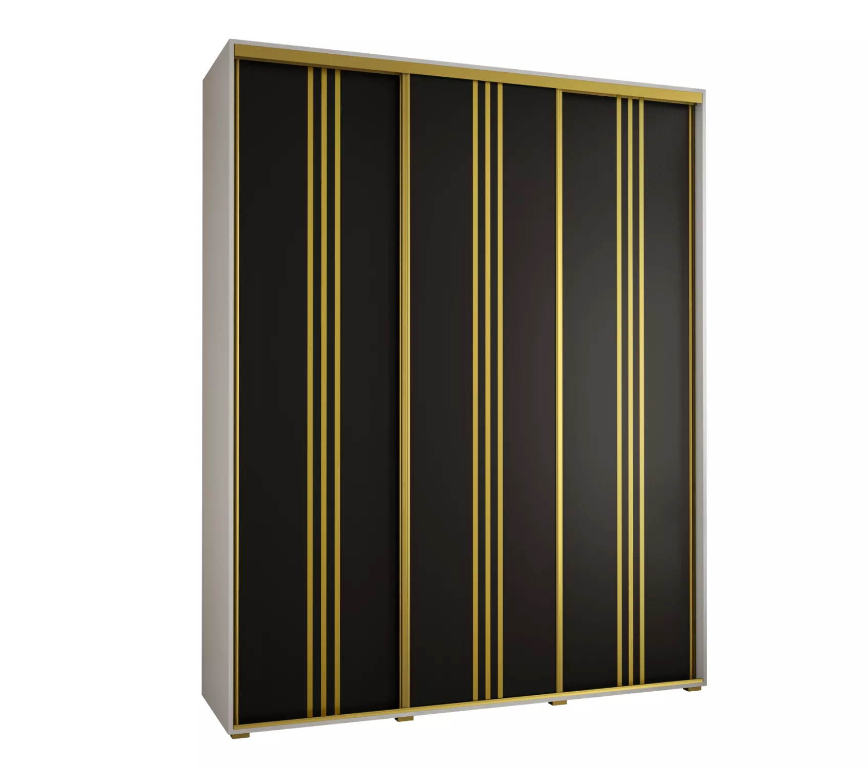 Šatní skříň ASIRI 6 - 200/60 cm, bílá / černá / zlatá