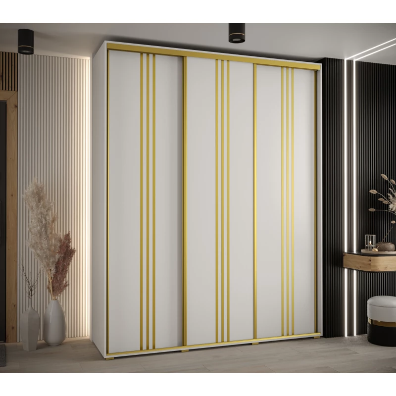 Šatní skříň ASIRI 6 - 200/60 cm, bílá / zlatá