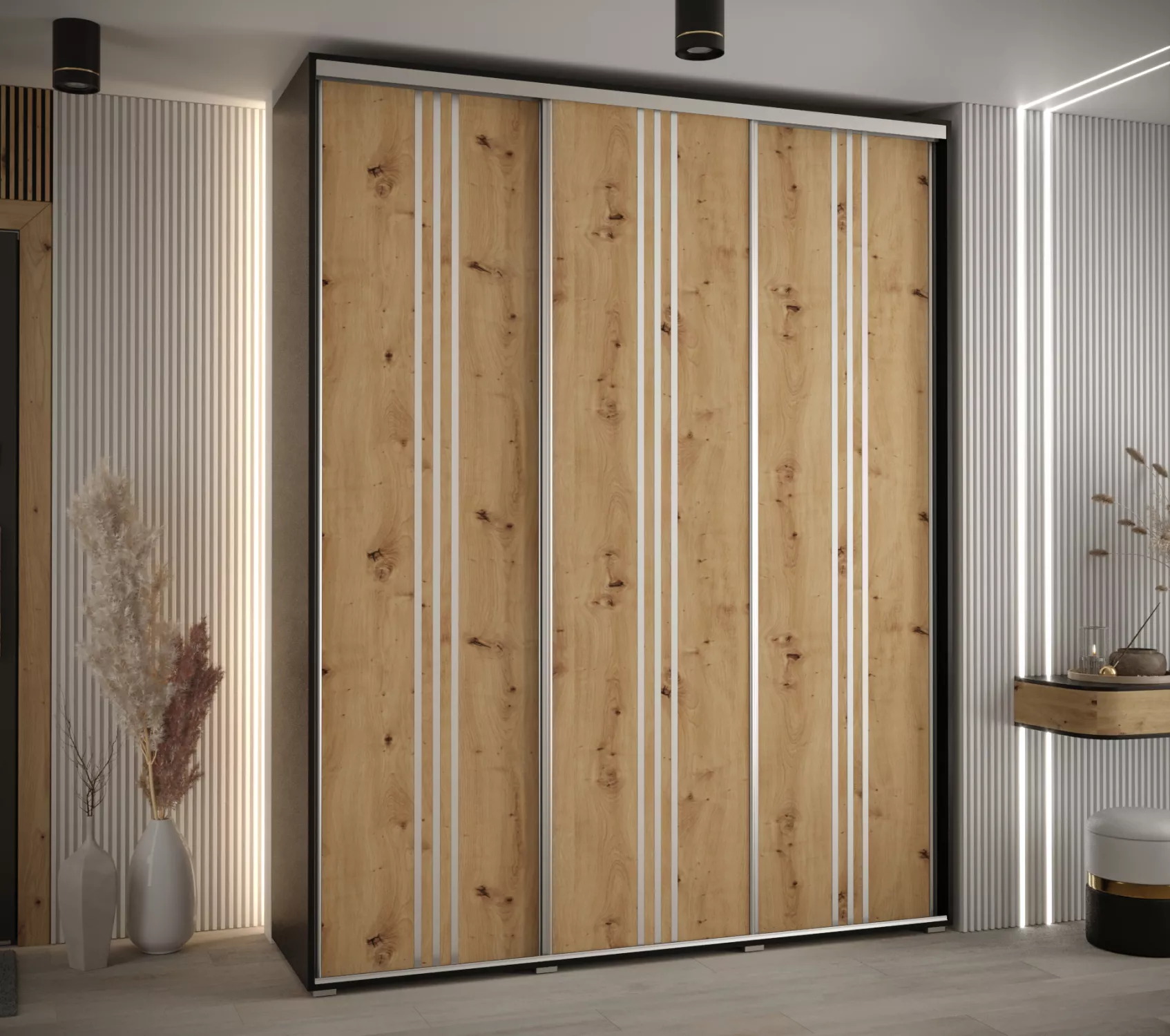 Šatní skříň ASIRI 6 - 200/60 cm, černá / dub artisan / stříbrná