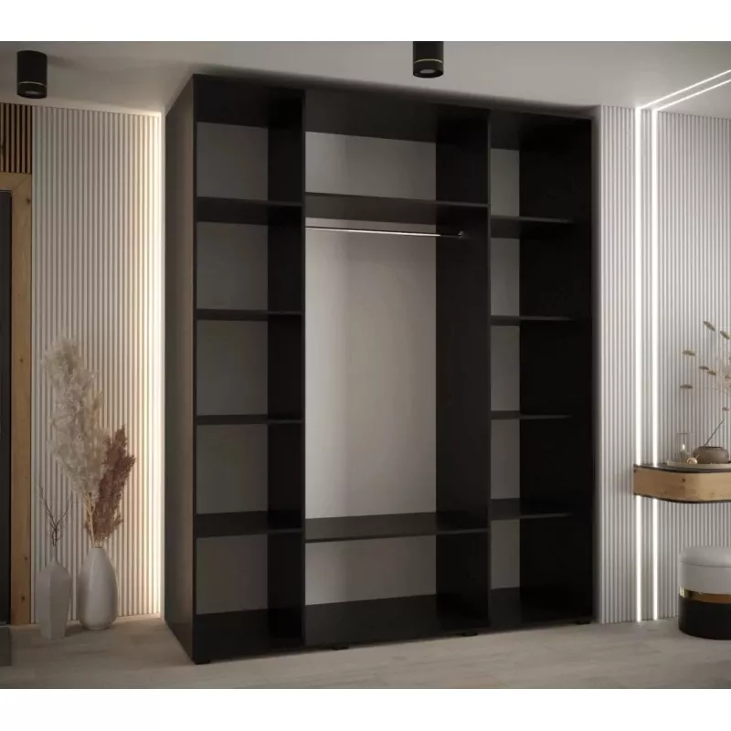 Šatní skříň ASIRI zaujme svým moderním designem a praktickými prvky. Šatní skříň má posuvné dveře, které se neotvírají do prostoru a ušetří tak spoustu místa.