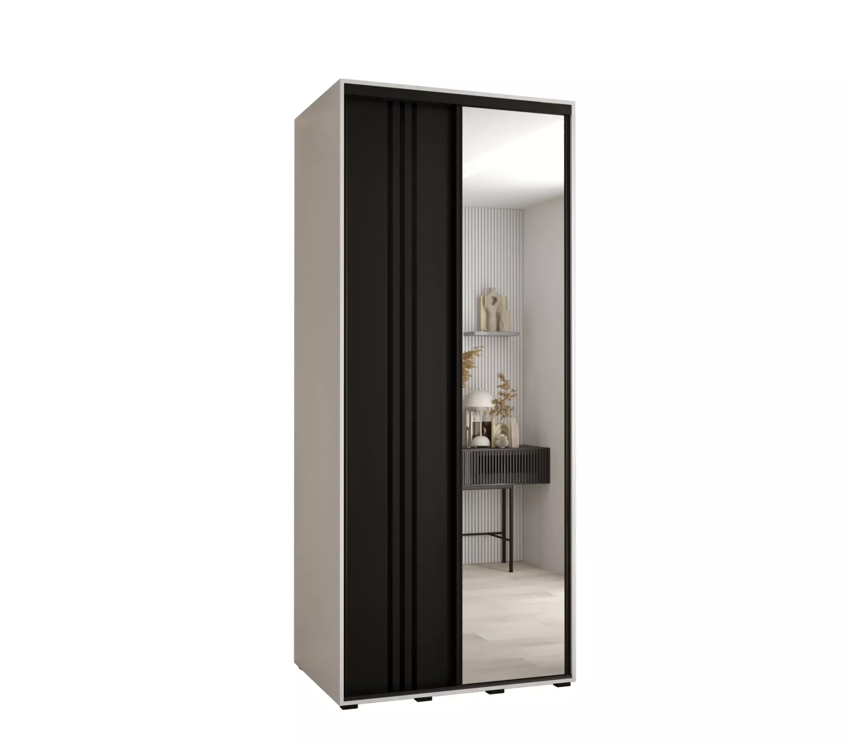Úzká šatní skříň se zrcadlem ASIRI zaujme svým moderním designem a praktickými prvky. Skříň má posuvné dveře, které se neotvírají do prostoru a ušetří tak spoustu místa. Vnitřek skříně lze uspořádat dle vašich potřeb.