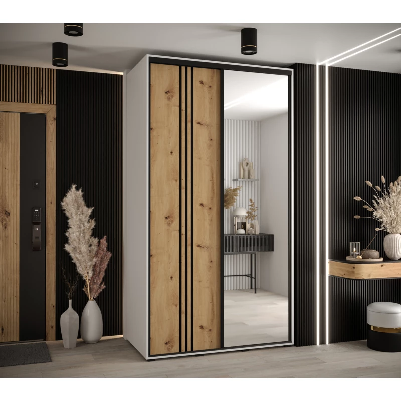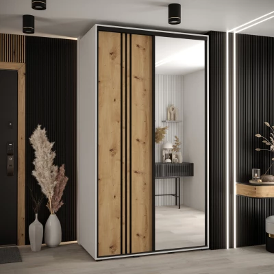 Šatní skříň ASIRI 7 - 140/60 cm, bílá / dub artisan / černá