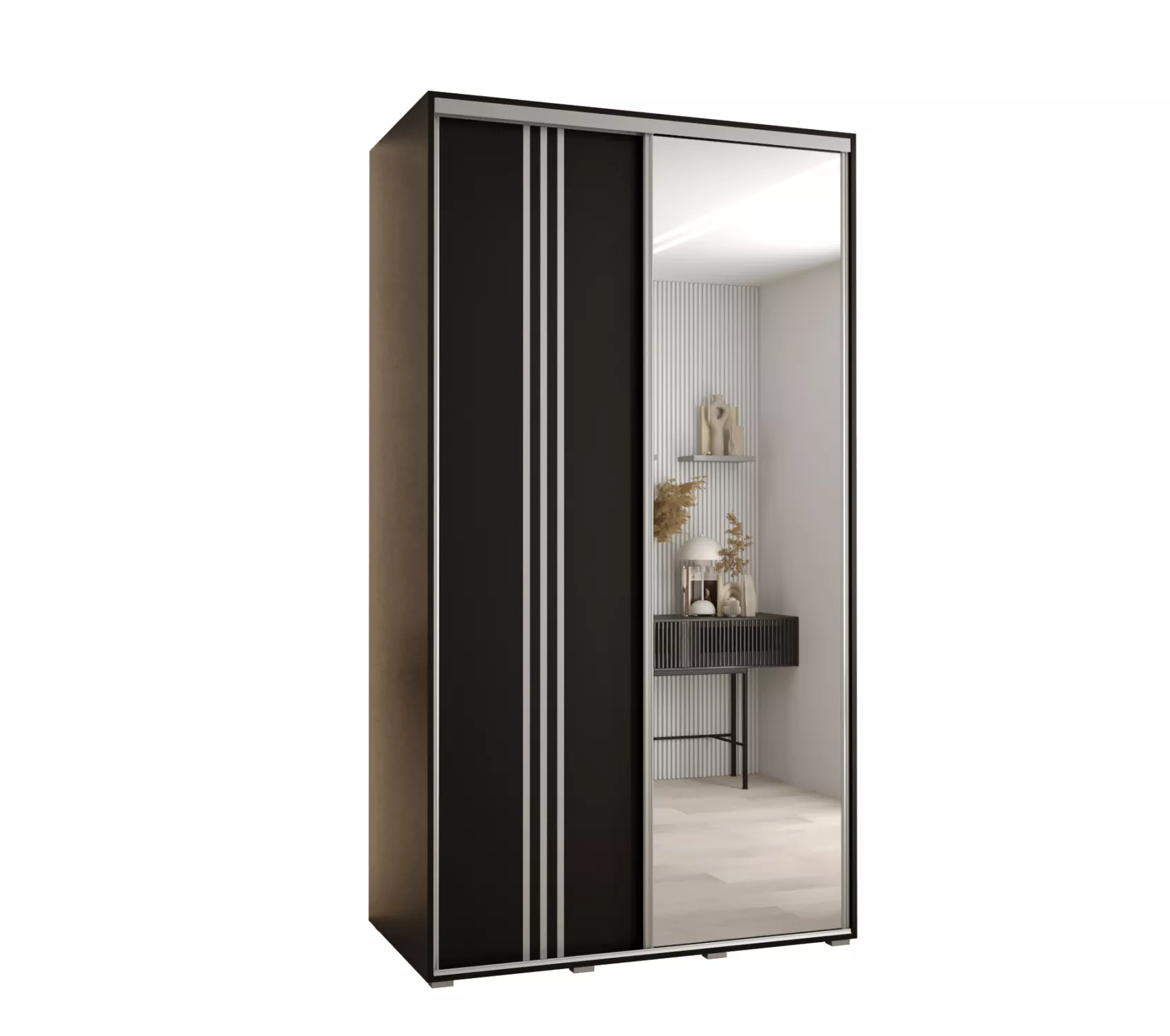 Šatní skříň ASIRI 7 - 140/60 cm, černá / stříbrná