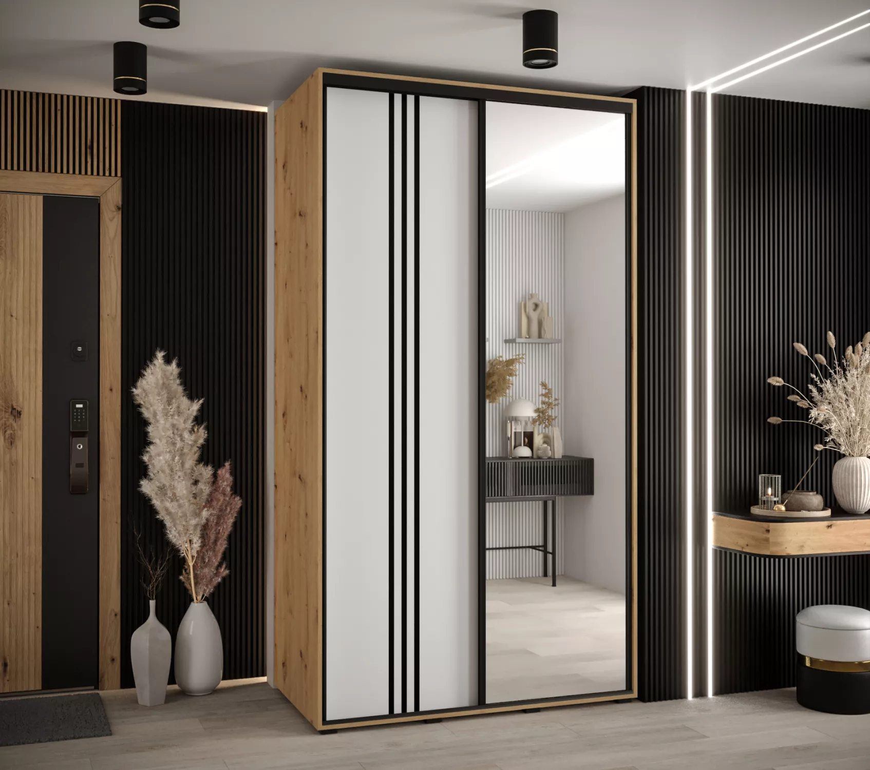 Šatní skříň se zrcadlem ASIRI zaujme svým moderním designem a praktickými prvky. Skříň má posuvné dveře, které se neotvírají do prostoru a ušetří tak spoustu místa. Vnitřek skříně lze uspořádat dle vašich potřeb.