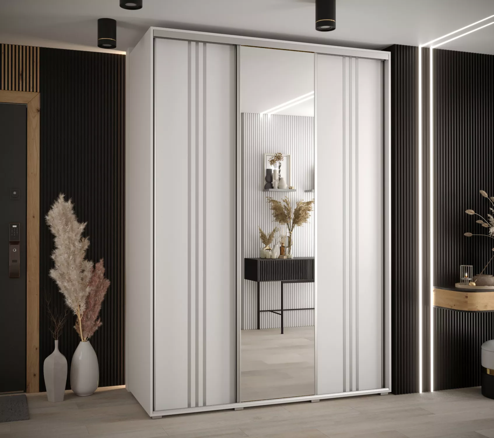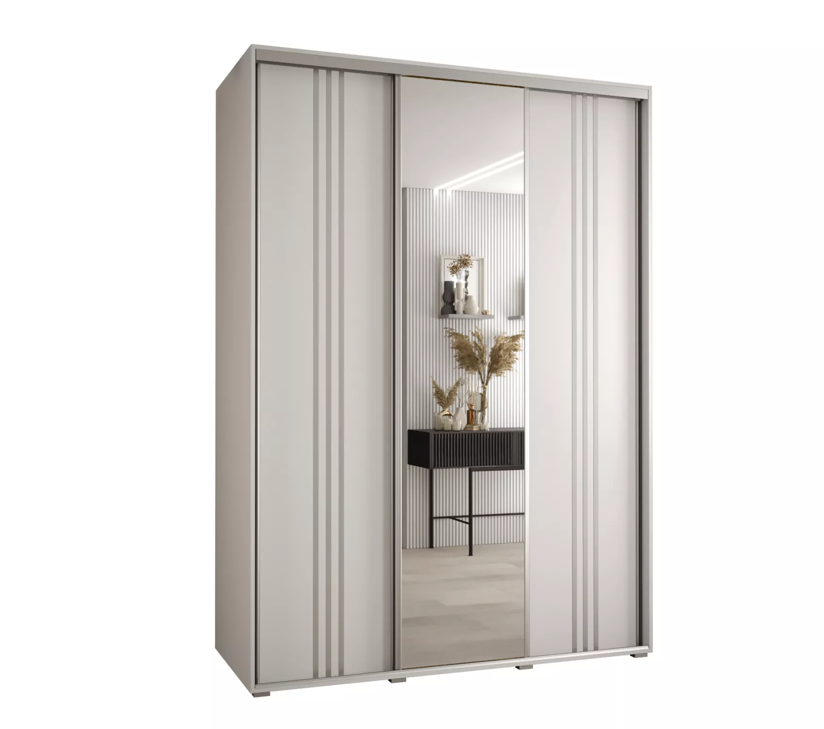 Vysoká šatní skříň se zrcadlem ASIRI zaujme svým moderním designem a praktickými prvky. Skříň má posuvné dveře, které se neotvírají do prostoru a ušetří tak spoustu místa. Vnitřek skříně lze uspořádat dle vašich potřeb.