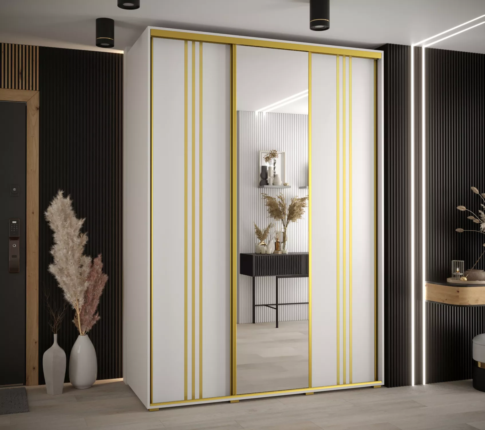 Šatní skříň ASIRI 7 - 180/60 cm, bílá / zlatá