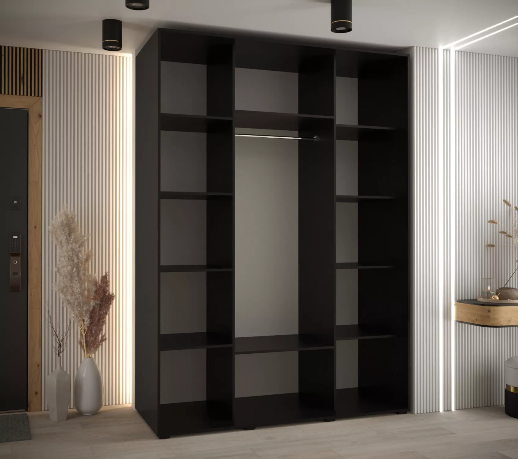 Šatní skříň ASIRI 7 - 180/60 cm, černá / stříbrná