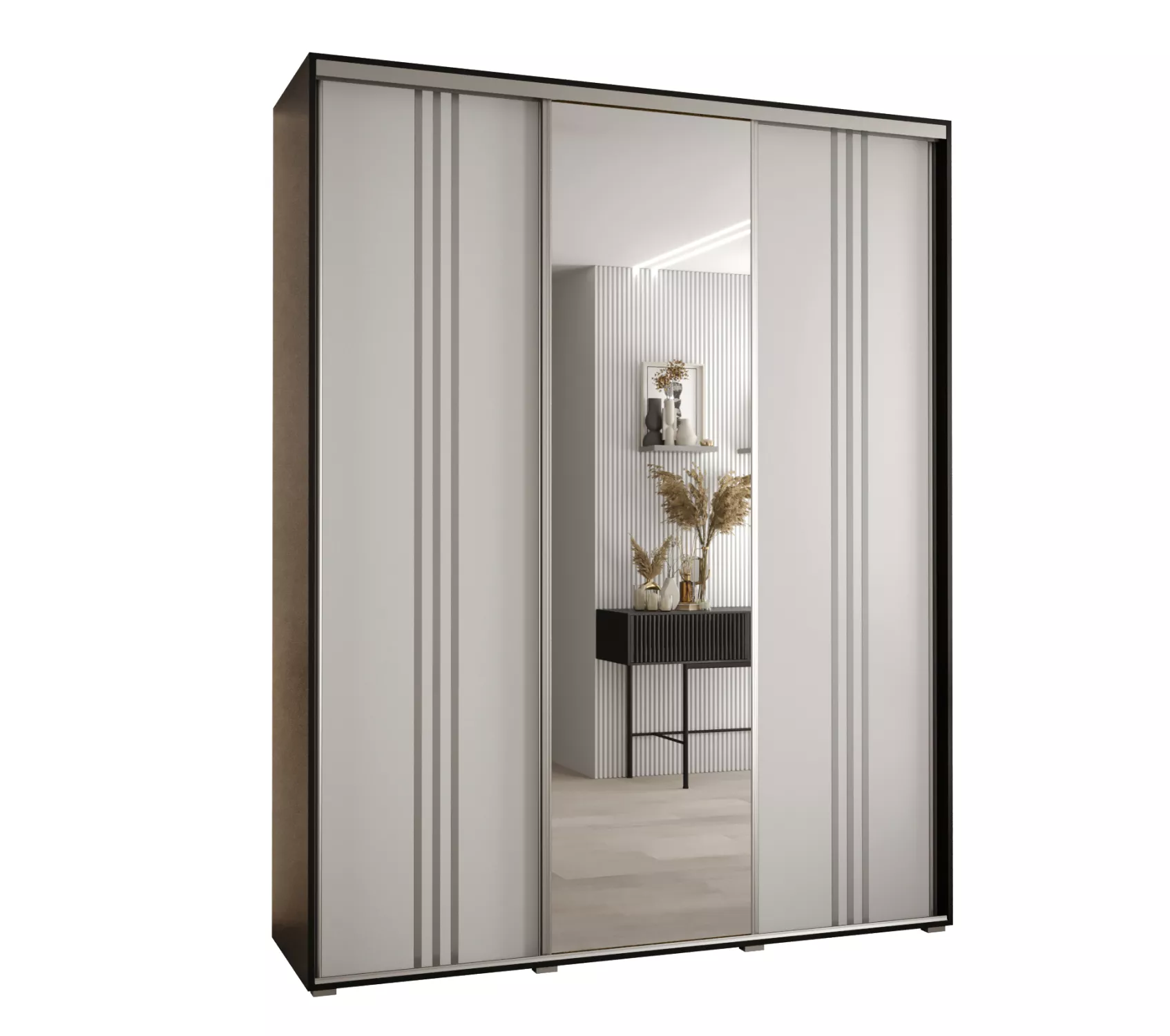 Velká šatní skříň se zrcadlem ASIRI zaujme svým moderním designem a praktickými prvky. Skříň má posuvné dveře, které se neotvírají do prostoru a ušetří tak spoustu místa. Vnitřek skříně lze uspořádat dle vašich potřeb.