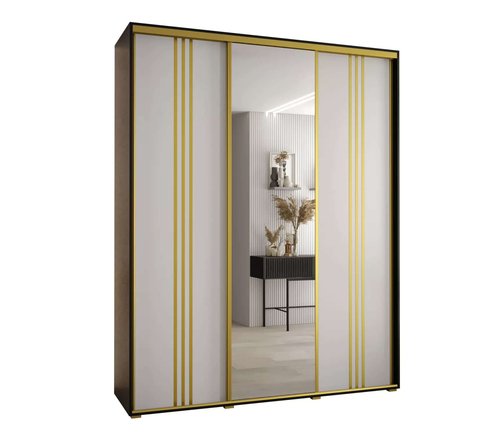Šatní skříň ASIRI 7 - 190/60 cm, černá / bílá / zlatá