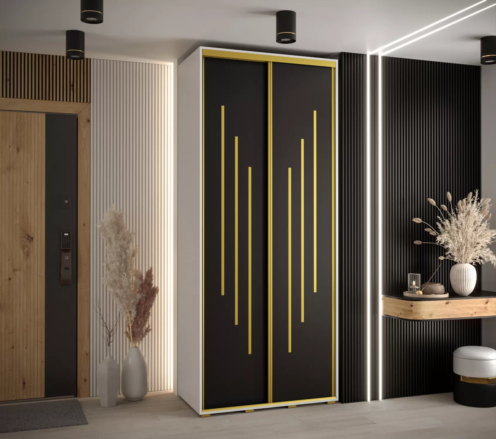 Šatní skříň ASIRI 8 - 100/60 cm, bílá / černá / zlatá