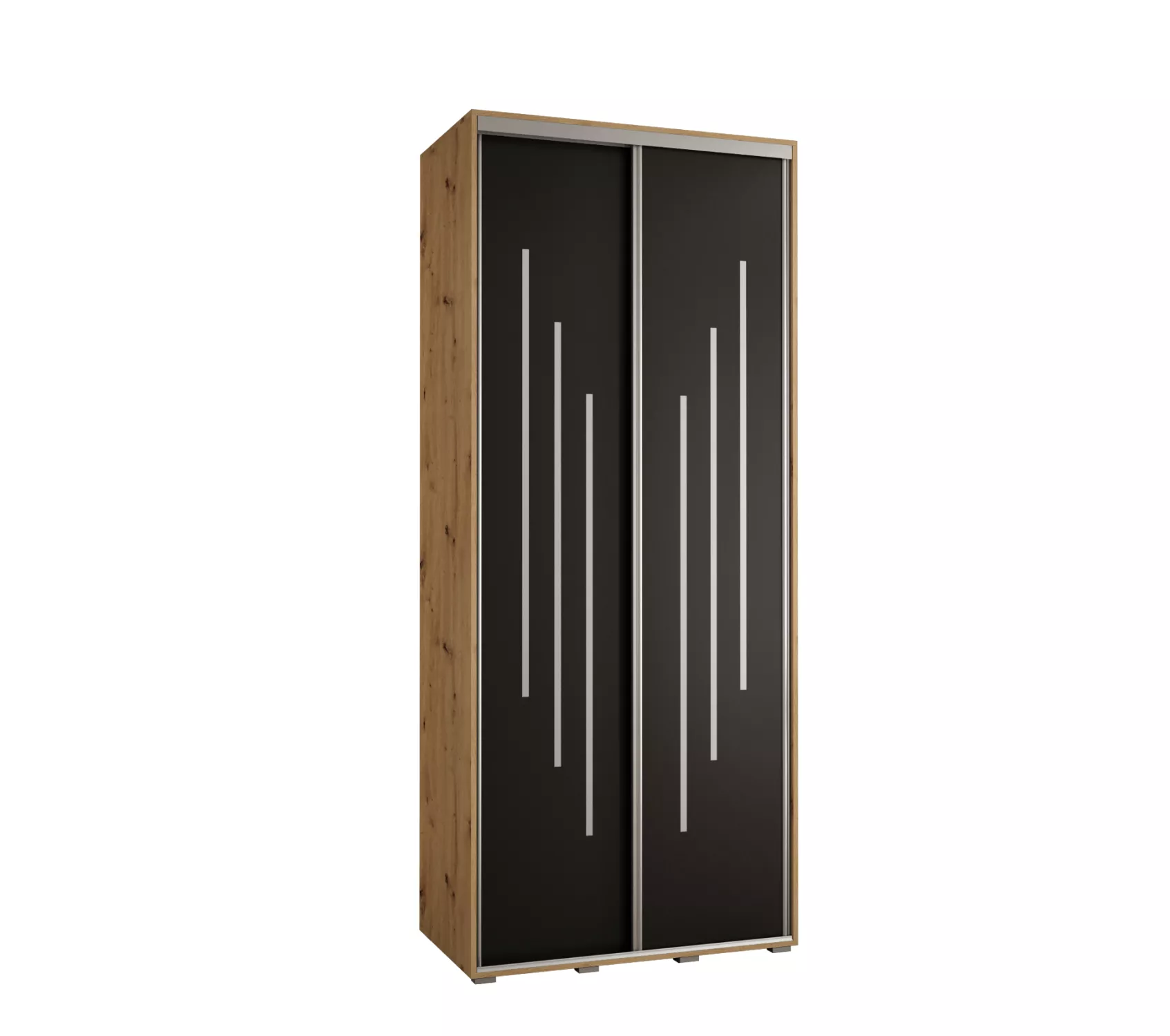 Šatní skříň ASIRI 8 - 120/60 cm, dub artisan / černá / stříbrná